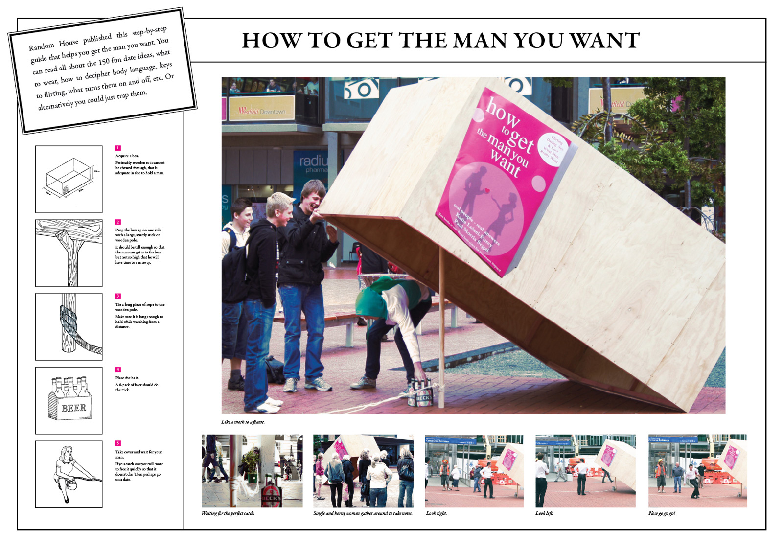 Se stie ca o opera de arta e cu atat mai valoroasa cu cat da nastere mai multor interpretari. Nu cred ca rationamentul e valabil si pentru publicitate. In cazul acestei executii neconventionale pentru cartea "How to get the man You want" (Flirting, dating, sex & love. What men really want), nu stiu daca sa mor de ras, intelegand ca "un caz disperat cere masuri disperate ca asta" sau daca sa inteleg ca "Sfaturile din cartea asta sunt la fel de sigure ca o capcana de soareci. (Si suntem atat de siguri de asta, incat i-am alocat si buget de promovare)".