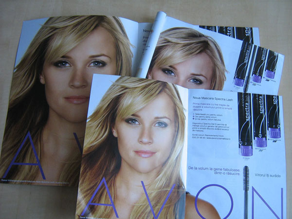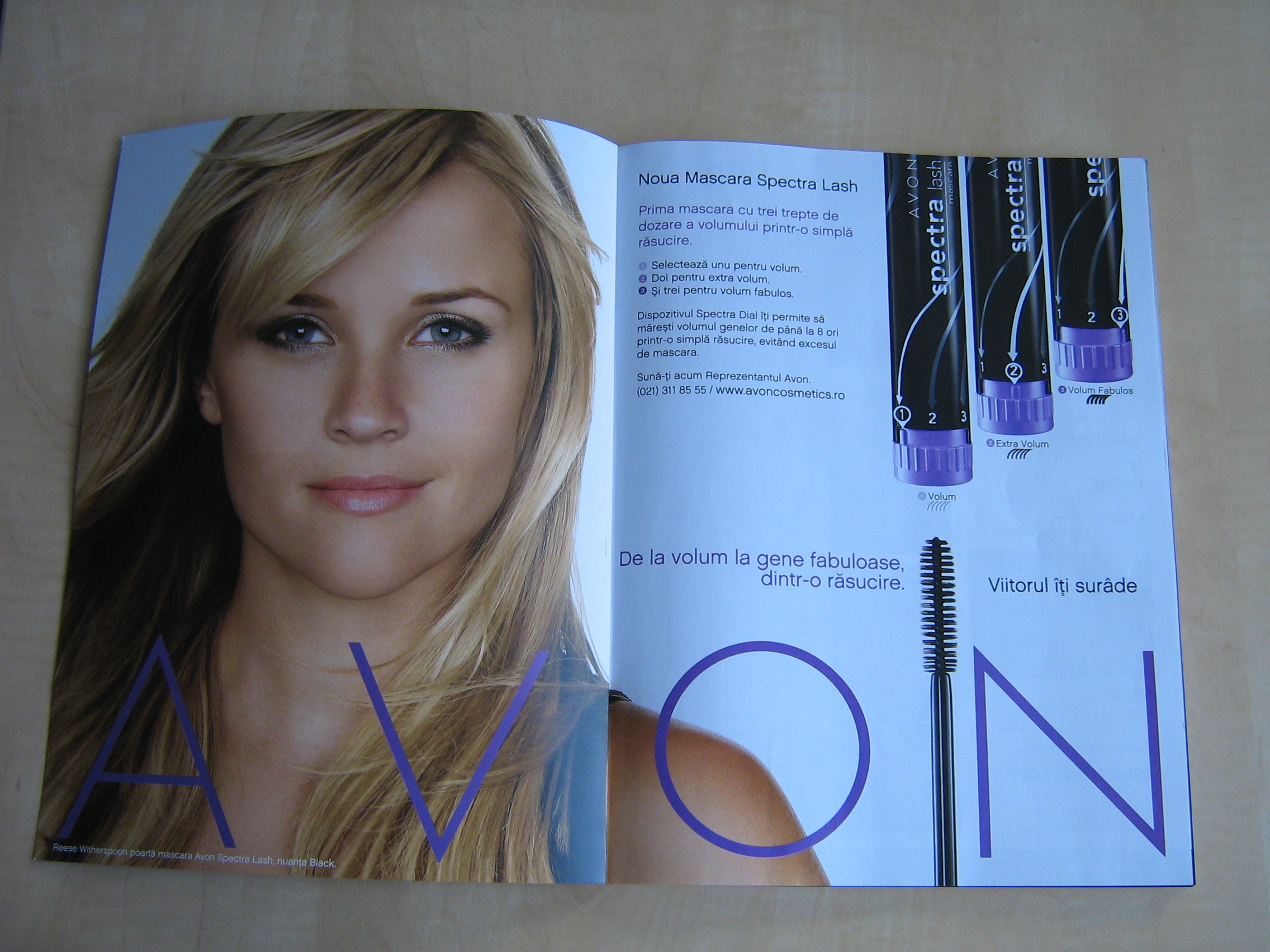 E plin de vedete in reclamele pentru cosmetice. Le gasim in mai toate revistele glossy. Incepand cu Sarah Jessica Parker pentru lotiunea antirid cu roll-on de la Garnier, Andie Mac Dowell pentru crema L'Oreal Revitalift, Reese Whitherspoon pentru rimelul de la Avon, Nicole Scherzinger pentru samponul Clear, Penelope Cruz pentru samponul Elseve Re-Nutrition si pana la vedete autohtone: Andreea Marin pentru vopseaua de par Garnier Color Naturals. Reclama cu Zana Surprizelor o gasim in Beau Monde alaturi de un articol despre Gala Unicef. La fel se intampla cu Justin Timberlake in Cosmopolitan, care apare in reclama pentru parfumul Givenchy, alaturi de o pagina de "articol" despre el. Si Liv Tyler promoveaza un parfum Givenchy si fondul de ten de la acelasi brand, iar Sienna Miller endorseaza parfumul Boss Orange de la Hugo Boss.