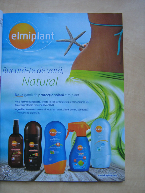Tot produse de ingrijire solara, de aceasta data marca Elmiplant apar si in numarul din iunie al revistei Joy. Si tot in aceasta apare si un advertorial despre "cardul de criza Oriflame", asta ca sa intelegem ca atunci cand vorbim de factori externi, nu vorbim doar de canicula ci si de seceta din finante.