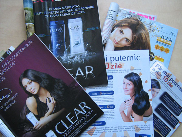 Privind din perspectiva advertiserilor, e firesc ca profita din plin de acest canal de comunicare cu publicul feminin. Revistele glossy sunt un loc de evadare pentru femeia moderna, un loc in care isi permite sa fie mai vulnerabila decat ar vrea s-o stie cei din jur, mai deschisa pentru a primi sfaturi. Ce loc mai bun sa-i vorbesti femeii despre solutii de infrumusetare?! Iata de ce paginile revistelor glossy sunt pline de... crema, sampon si pe alocuri au chiar si urme de ruj.