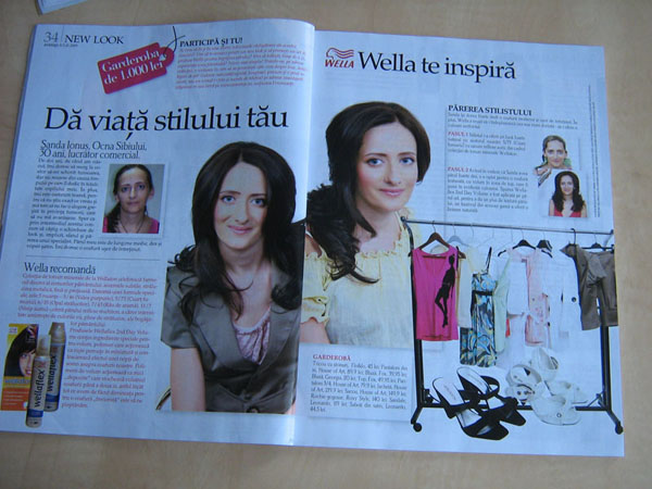 Undeva la granita dintre advertorial si recomandarile stilistului, "Garderoba de 1.000 de lei" din Avantaje de iulie, rubrica sponsorizata de Wella, scoate in evidenta schimbarile de look pe care le pot aduce cateva produse de styling si niste tinute noi. Intr-un colt, o poza care sa descrie procesul de transformare al femeii obisnuite cu un product placement evident: un par bine tapat, un zambet incurcat si o mana in aer...care administreaza fixativ Wellaflex.