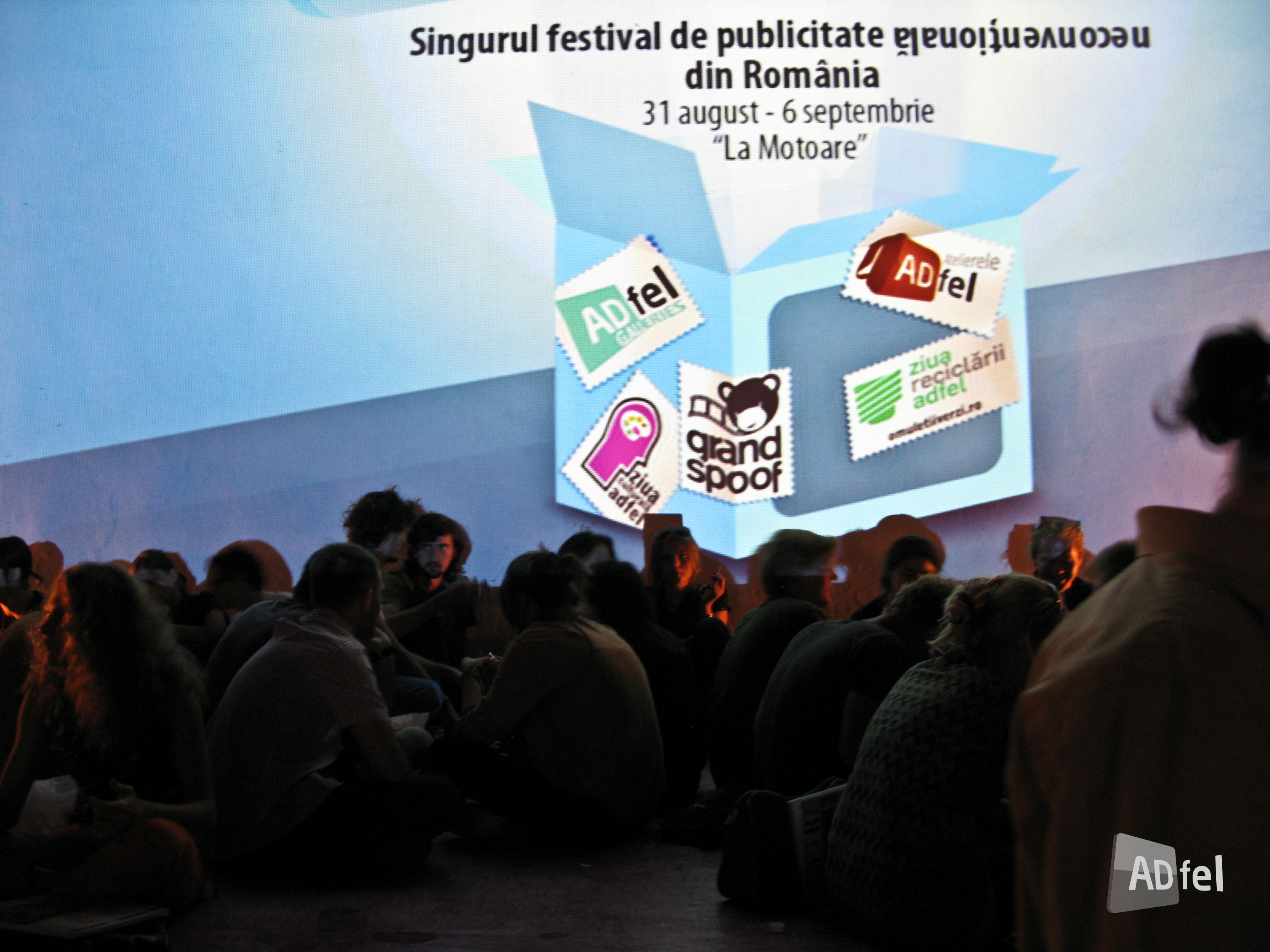 Cea de-a patra editie ADfel, singurul festival de publicitate neconventionala din Romania, organizat de IQads si 24-FUN, si-a inchis portile duminica seara, dupa o saptamana in care terasa La Motoare a gazduit o serie de manifestari gandite si implementate de mai multe branduri comerciale, dar si de branduri din randul ONG-urilor si asociatiilor cu profil social sau cultural.