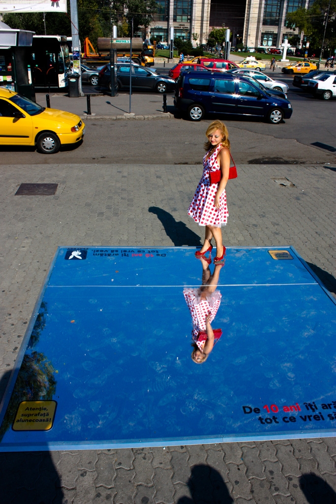 In zona fantanilor de la Universitate a fost amplasata o oglinda de 9 m2, inscriptionata sugestiv "De 10 ani iti aratam tot ce vrei sa vezi. PLAYBOY".