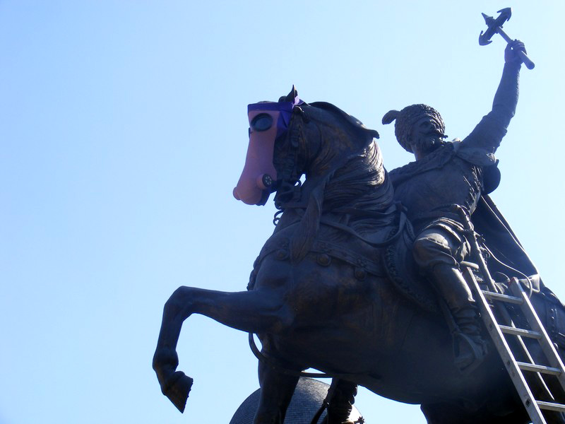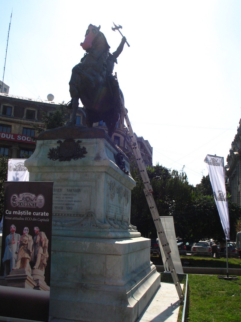 Statuile lui Ion Heliade Radulescu, Gheorghe Lazar, Mihai Viteazul, Alexandru Lahovari, Mihail Kogalniceanu, Spiru Haret, C.A. Rosetti si Lupoaica cu pui vor purta, timp de doua saptamani, masti de gaz.