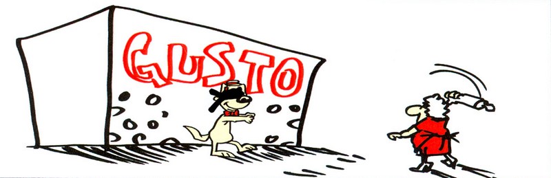 Artistul Stefan Popa Popa's a realizat pentru ambalajul pufuletilor Gusto o serie de caricaturi tematice, potrivit unui comunicat de presa The Practice.