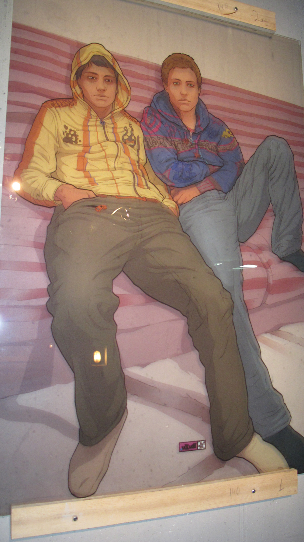 … Lutzu (Senior Art Director la McCann de vreo 6 ani), cunoscut in agentie si ca Ionut Cojocaru, a strans artistii in sufragerie, ca sa le pot vesti venirea art criticilor de la IQads. “O, ce veste minunata!” se citea pe chipurile lor, dupa cum puteti vedea la IQadsTv. Dintre cei care au expus, au fost prezenti in sufragerie: Andrei Fantana, Buzu (Ana Andronic), Carioca (Andrei Sam Stoleru, Dragos Coman, Dragos Traistaru) si Dominus (Alex Negoita).