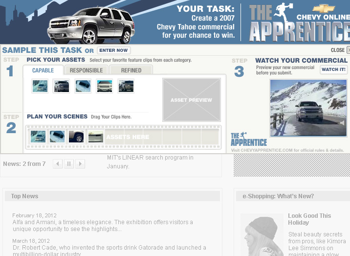 Adrian Stanescu: Pentru lansarea lui Chevrolet Tahoe in "The Apprentice", emisiunea lui Donald Trump, agentia a facut un banner in care userul isi putea crea propria varianta de spot tv.
