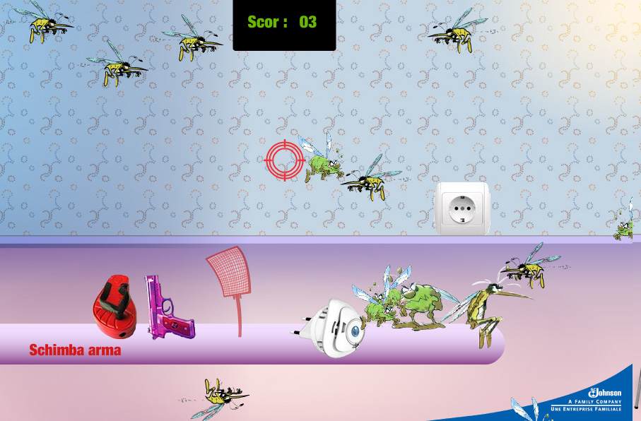 Adrian Stanescu: Era un banner care se expanda la click, nu la mouseover, ca sa nu fie intrusiv, pentru ca overlayerul se intindea pe toata pagina. Era vorba de un joc in care trebuia sa omori tantarii si mustele, cu unul dintre cele 3 instrumente de acolo. Rata de interactiune a fost de 22 de ori mai mare decat rata de click (asta inseamna ca la fiecare om care a dat click, au fost 22 care s-au jucat), iar dwell time a fost de aproape 1min. 17 sec. A rulat pe 4 site-uri romanesti.