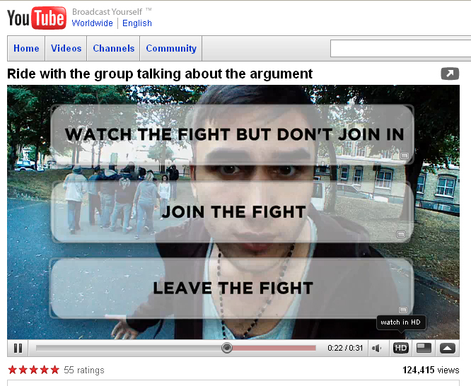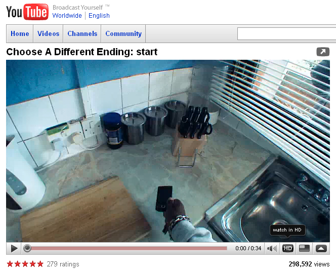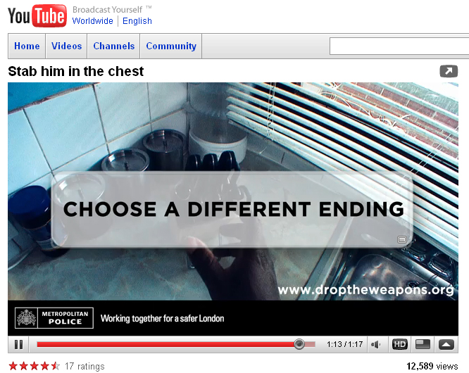 De aceea e important ca au gasit aceasta solutie de informare, prin vocea politistului care da verdictul in final. Aceste filmulete de deznodamant au insa doar 20.000 de afisari in medie, cele mai vizionate fiind cele de la inceputul lantului: 306.000 - filmul de start si in jur de 180.000 - cele doua care urmeaza: "Take the knife" si "Don"?t take the knife".
