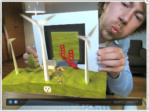 Pe PlugIntoTheSmartGrid.com se poate accesa simularea tehnologiei alternative "smart grid", care e mai mult sau mai putin un camp verde cu mori de vant pe care il poti tine pe o plansa si il poti plimba prin fata ecranului (demo).