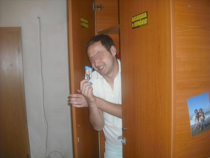 Copiii, din fericire, vor constientiza implicatiile umilitoare ale actiunilor lor abia mai tarziu. Inca mai au o sansa la salvare. Lucru care nu poate fi spus despre oamenii care aleg sa se umileasca de buna voie in public. Spre exemplu, individul de mai jos - protagonist al 18 clipuri postate pe pagina de Facebook a Biscuitilor Ulpio. Care isi demonstreaza loialitatea mancand Cremita direct din chiuveta, perete, culeasa de pe un geam si, cireasa de pe tort, direct din cosul de gunoi.