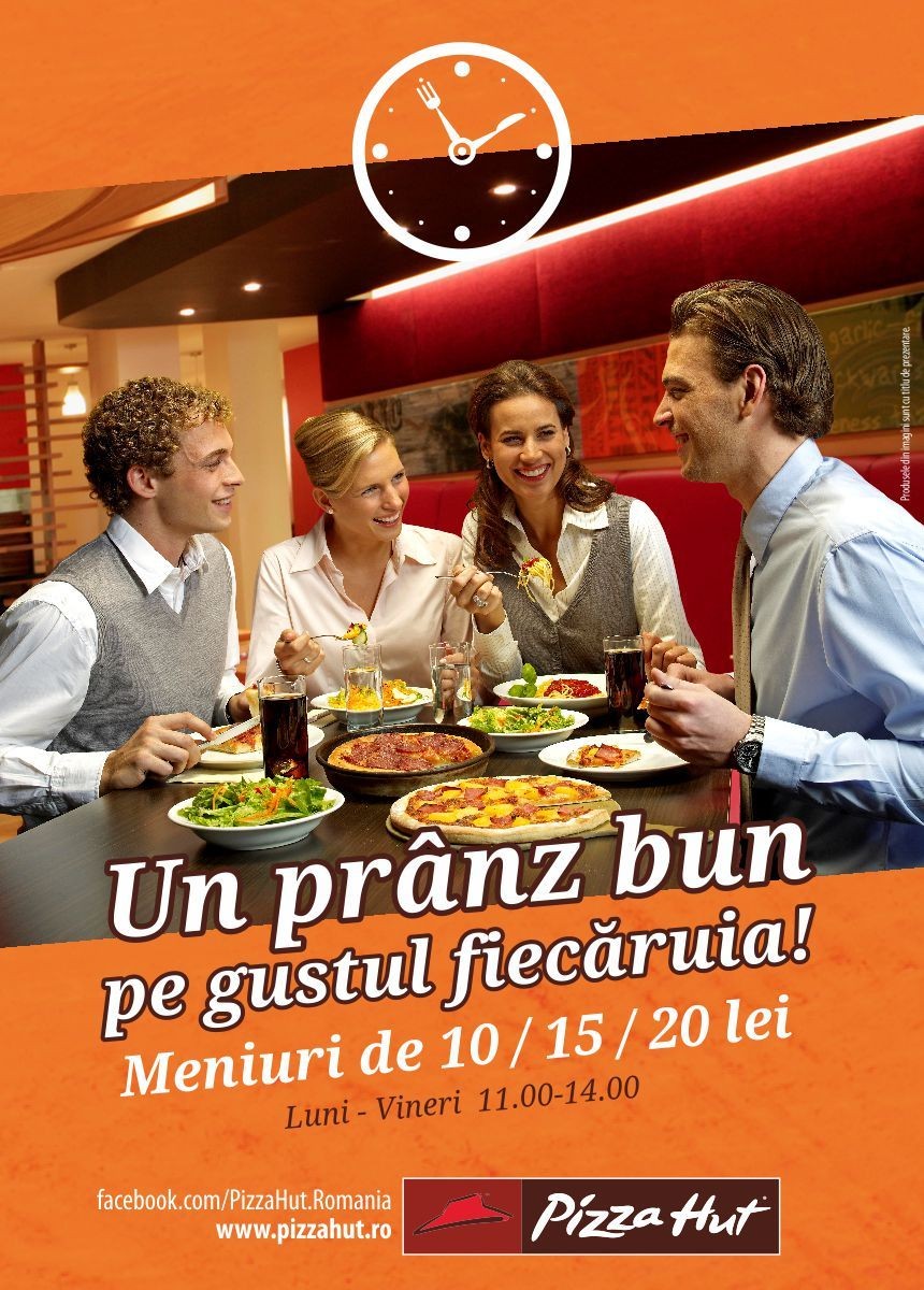 Campanie de promovare a ofertelor promotionale Pizza Hut are loc in perioada 2 iunie – 15 august, informeaza un comunicat emis de OnMedia. Oferta "Pizza Festival" este comunicata prin spot TV care este o adaptare in limba romana a spotului difuzat la nivel international. Posterele promoveaza ofertele "Happy Hour" si "Un pranz bun". De asemenea, comunicarea va fi realizata si prin Social Media.