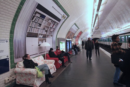 Cu doi ani in urma, peroanele din 4 statii de metrou din Paris au fost colorate cu ajutorul panourilor cu interioarele IKEA si al unor canapele.