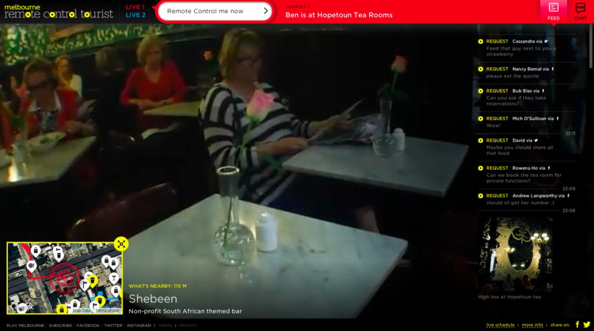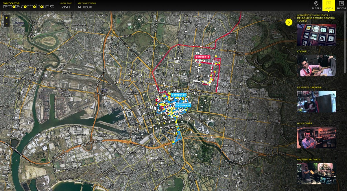 Centrata pe ideea What if you could go before you go?, campania se desfasoara intre 9 si 13 octombrie. Patru exploratori urbani, echipati cu camere care transmit prin livestream, vor primi directive de la utilizatori via Facebook si Twitter. Opt ore pe zi, turistii de imprumut vor explora orasul Melbourne, vor sorbi din cafele, vor manca tot soiul de feluri de mancare, vor pedala spre obiective turistice sau vor sari in taxiuri spre colturi indepartate ale orasului.
