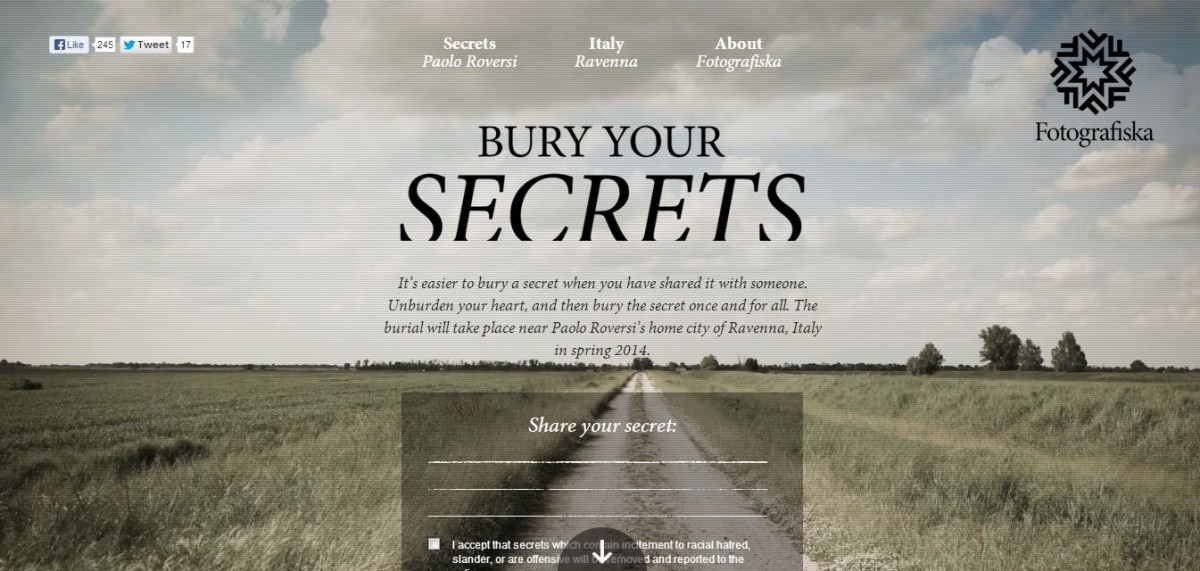 Pentru a promova expozitia de fotografie semnata Paolo Roversi, Secrete, muzeul Fotografiska si agentia ORD&BILD au lansat site-ul Bury Your Secrets.