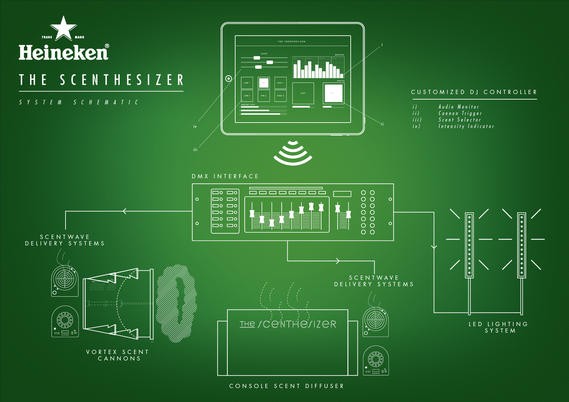 TJ si un DJ sunt cei care au conceput prototipul. TJ este un expert in mirosuri, iar DJ-ul in cauza este Funk Bastard. Impreuna au ascultat mai multe piese ale DJ-ului si au creat o asociere de bucati muzicale si mirosuri. Pentru ca si melodiile urmeaza o anumita linie, si mirosurile se schimba pe parcursul unei piese. Prototipul a fost lansat in cadrul unuia dintre evenimentele exclusiviste Green Room Singapore ale Heineken. Pentru cei pasionati de tehnologie si circuite, schita prototipului arata cam asa:
