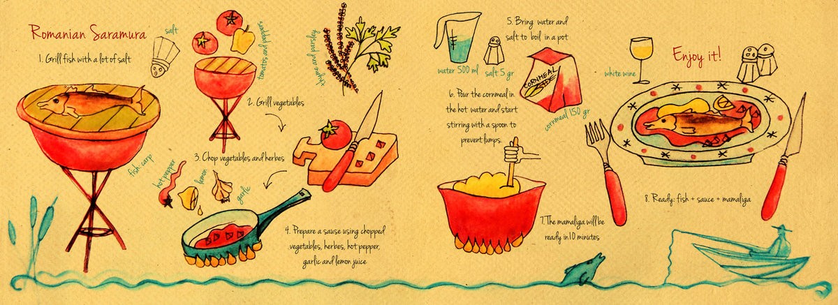 TheyDraw&Cook.com e un loc minunat, unde gatitul si ilustratia se impletesc ca si cum asta ar fi cel mai natural lucru din lume. Dupa cum ii spune si numele in limba engleza, aceasta platforma este intesata de oameni care au talente grafice si culinare si creeaza niste retete ilustrate de toata frumusetea. Din fericire, site-ul este dotat si cu o harta, care ne arata ca oamenii astia vin din toata lumea. Inclusiv din Romania. Si cu gandul la "In bucataria romanilor. De la raft in farfurie", cel de-al zecelea raport SMARK Research, realizat de Nielsen Romania, am vrut sa vad daca preferintele culinare ale romanilor in general se potrivesc cu preferintele romanilor ilustratori. Nu stiu ce sa zic. Iata ce mananca conationalii pe care i-am gasit pe TheyDraw&Cook.com (ce manaca romanii in general, aflati in raport).