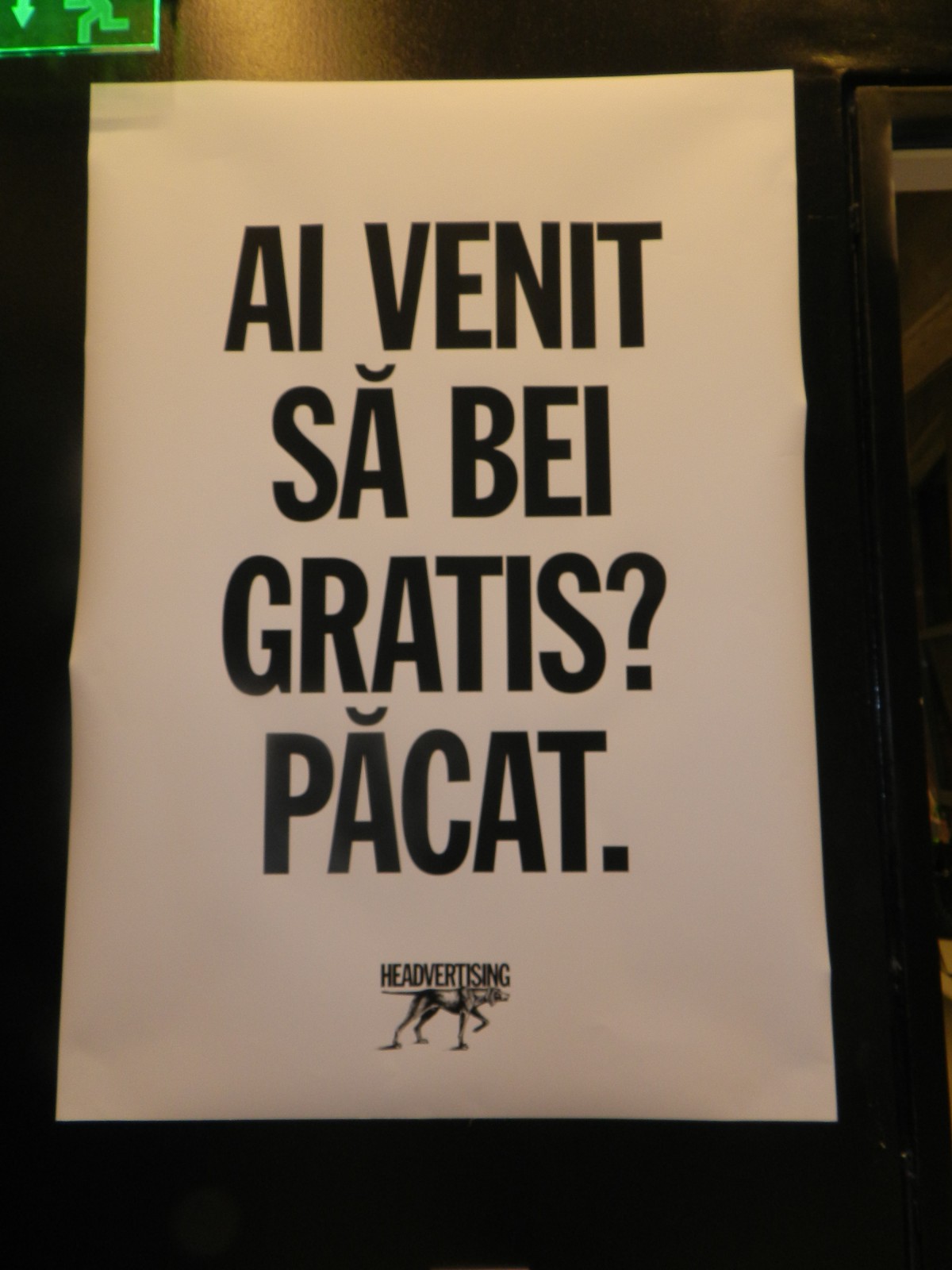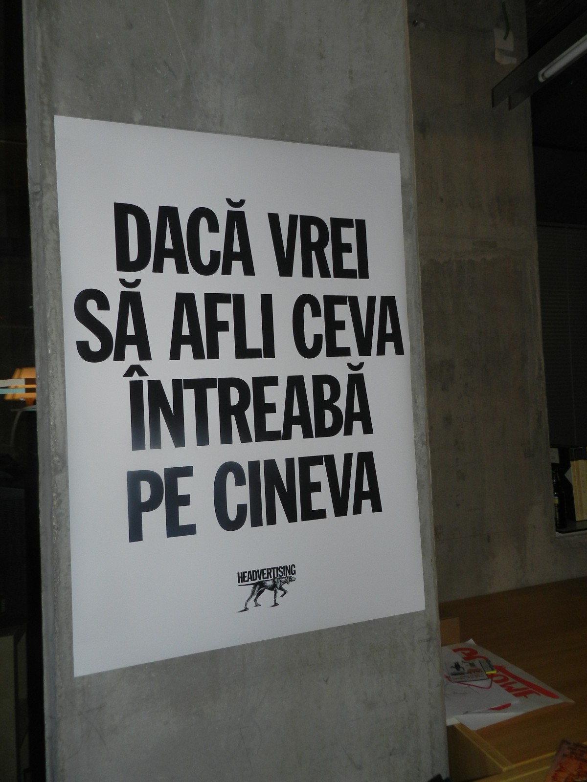 Am stabilit apoi contactul cu numitul Serban Alexandrescu care, dupa ce ne-a identificat fetele ca provenind de la IQads, ne-a prezentat fugitiv open space-ul Headvertising: aici sunt birourile, masa mare a Client Service-ului, coltul mai galagios, creativii mai incolo si tot asa. S-a ivit si subiectul planurilor curente ale agentiei - daca nu stiati, la Headvertising sunt cautati 8 interni proaspeti, gata de formare in copywriting si, de preferat, fara prea vasta experienta in publicitate. Pe langa plecarea lui Cornel Gologan in Turcia, sef prolific al departamentului de creatie pana mai inainte, golul ramas in grupul creativ al agentiei e completat chiar de Serban, ajuns din nou in postura dubla de director de creatie si cap managerial de agentie. Asa ca, aviz amatorilor.
