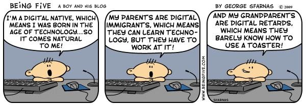 Raportul de cercetare ofera o definitie "ca la carte" a ceea ce inseamna digital natives din perspectiva modului in care isi obtin si isi cheltuie veniturile. Eu o sa incerc sa fac un autoportret de nativ digital, intr-un mod caracteristic unui nativ digital: scotocind pe internet dupa comics-uri care vorbesc despre problemele noastre (inventate sau nu). Ia vedeti, seamana?