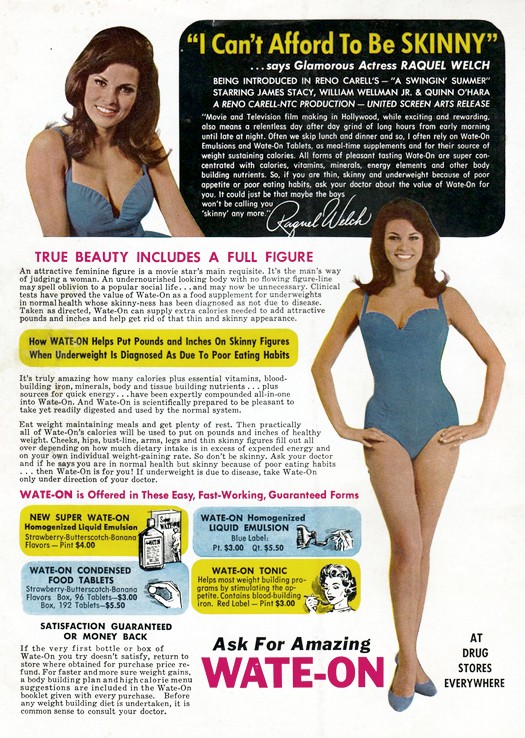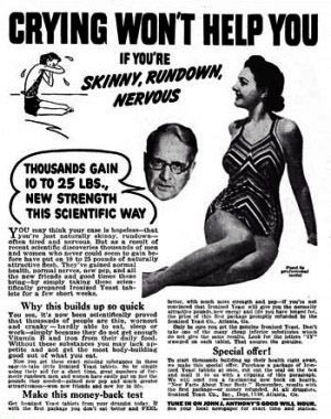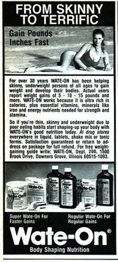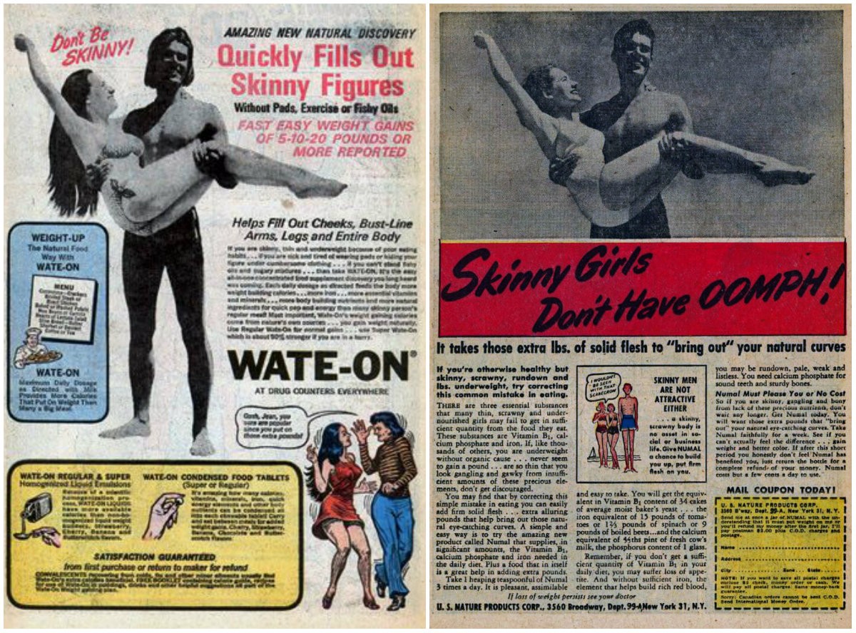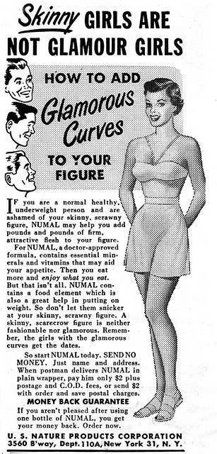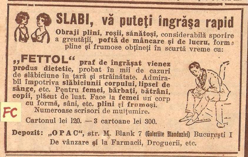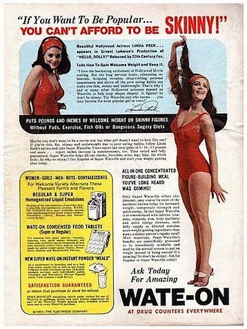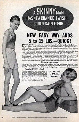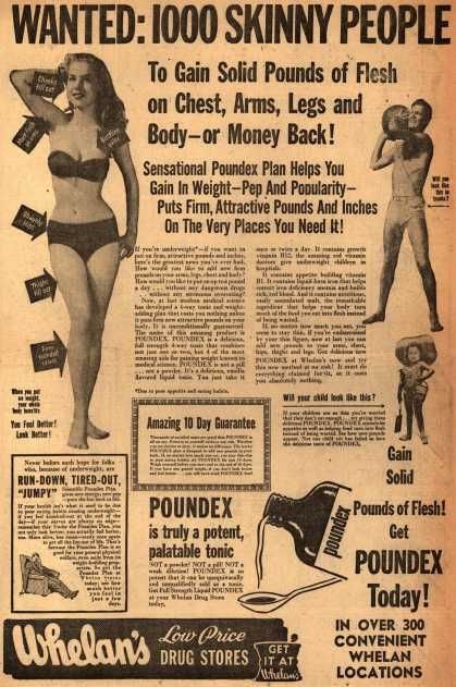 In cinstea rezolutiilor de Anul Nou, am inceput anul cu reclame de slabit de la noi si din lume. Insa, la un moment dat, au inceput sa apara si reclame pentru produse care le ajutau pe femei sa puna cateva kilograme pe ele. Pentru ca fetele slabe nu se distrau, nu erau populare si nu atrageau atentia barbatilor. Cel putin asa ne arata reclamele vintage de mai jos.