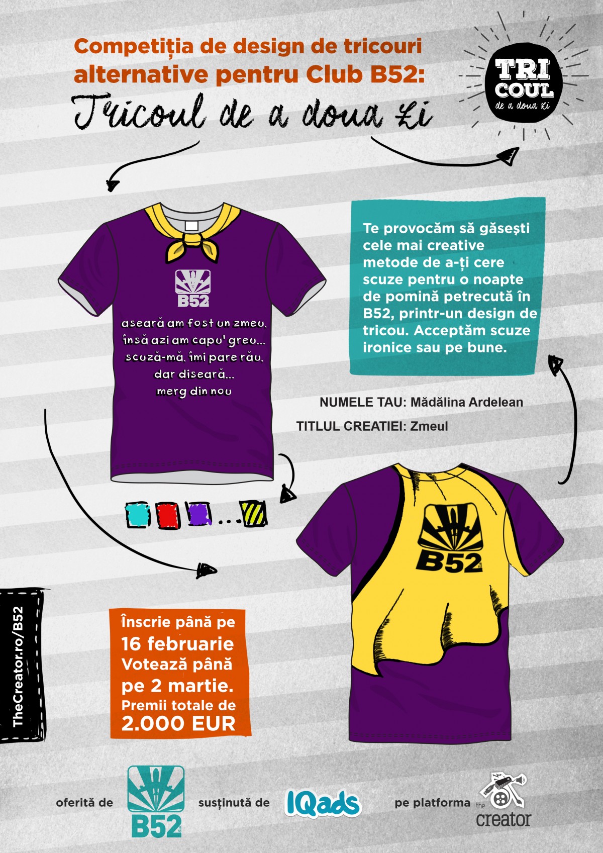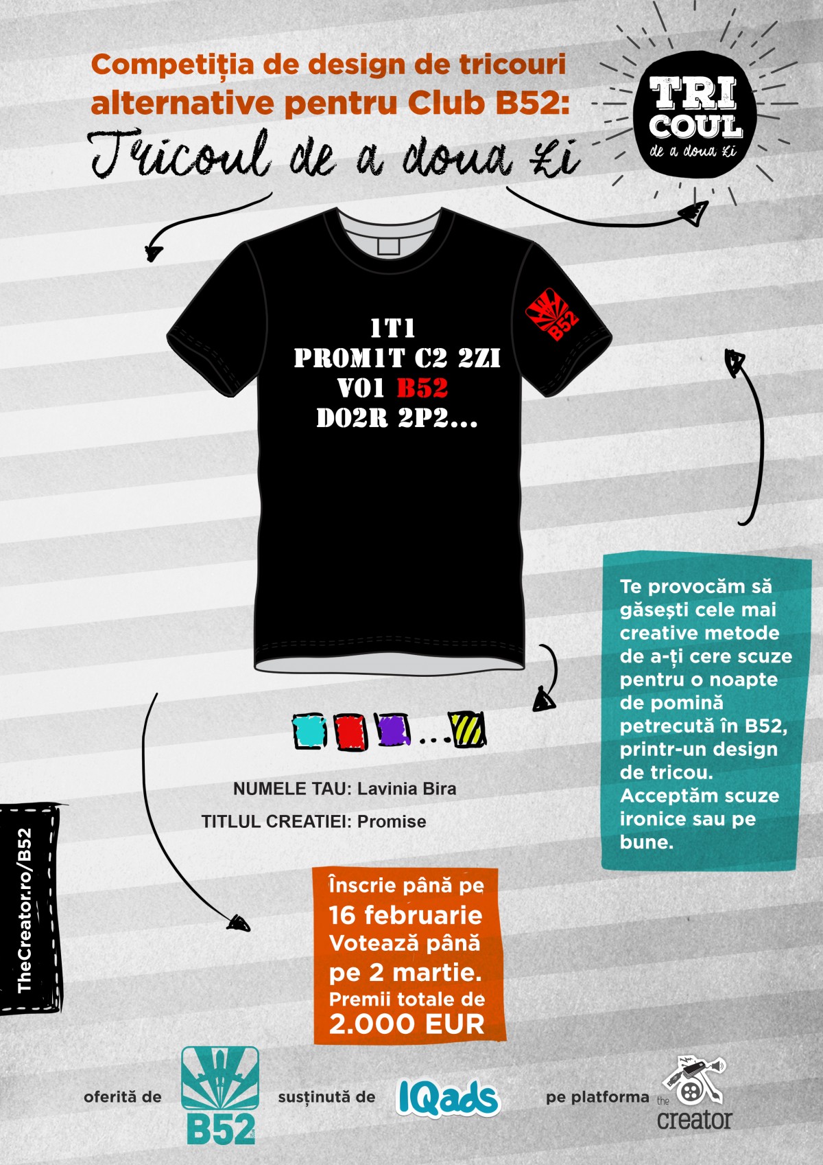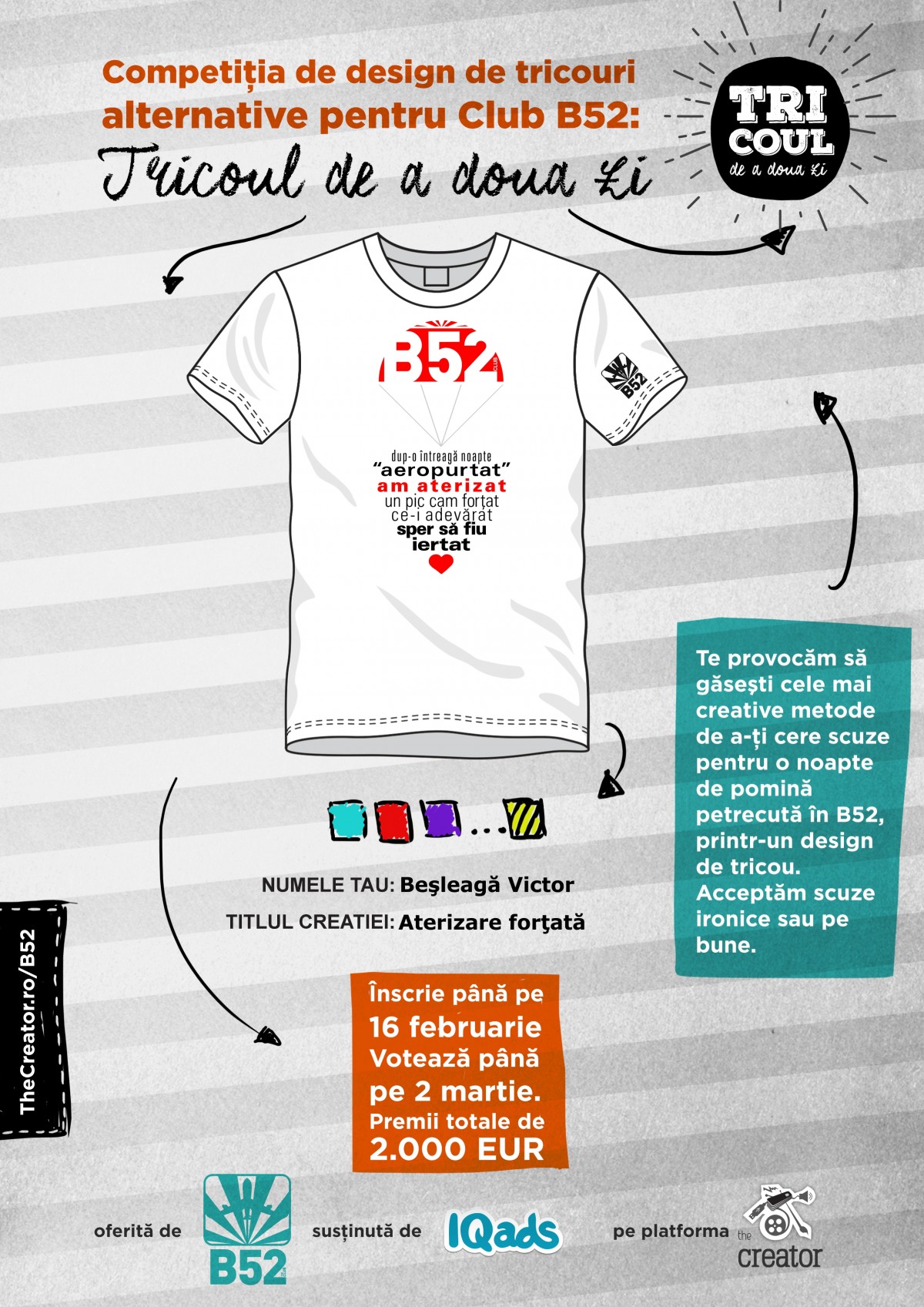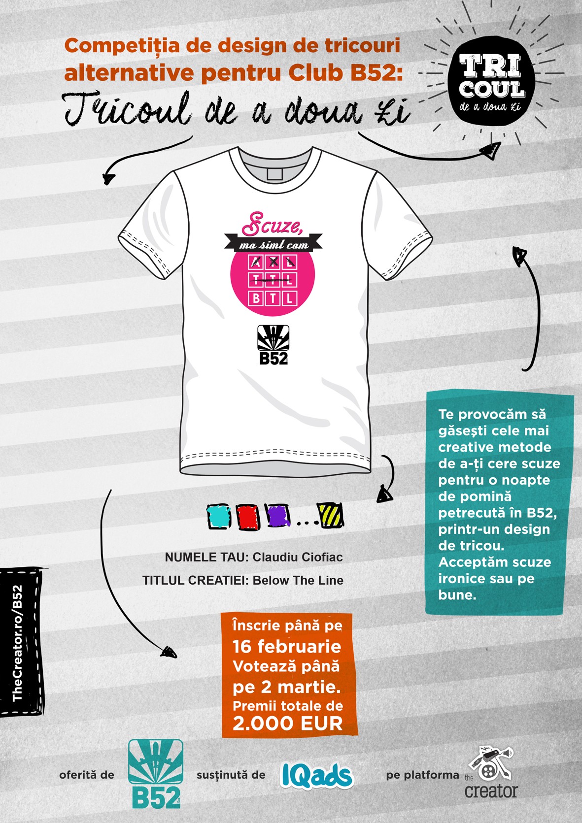 Mai multe detalii despre competitie, regulament si inscrieri gasesti pe site: www.creator.iqads.ro/b52.