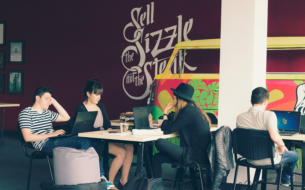 Dar, sa recunoastem, avem si niste locuri preferate, cum ar fi "la studenti" – nu, nu e o cantina, ci un spatiu decorat cu lumini si umbre din publicitate, unde ne simtim cel mai bine, in ciuda canapelelor paralelipipedice de la Sfantul IKEA.