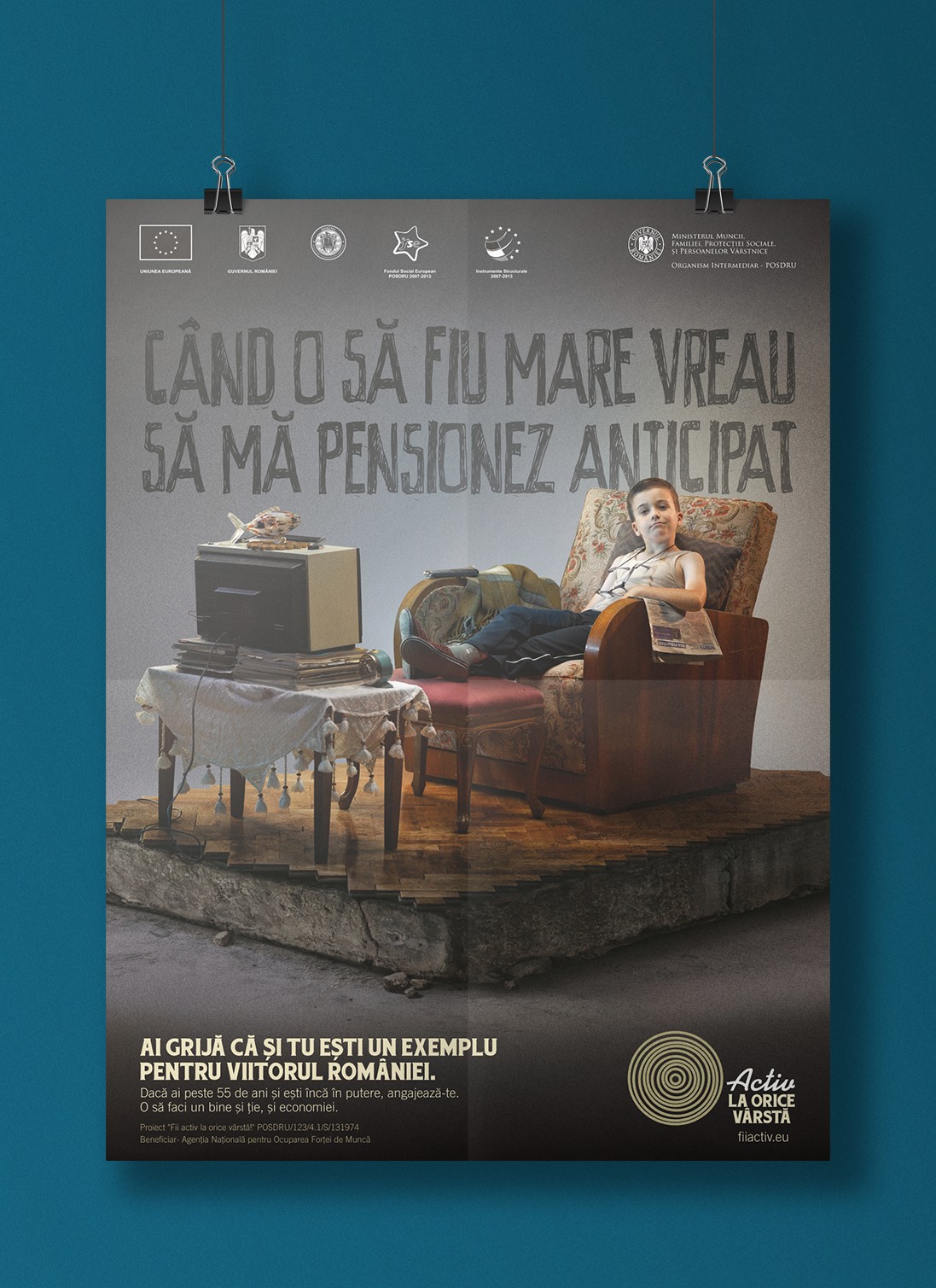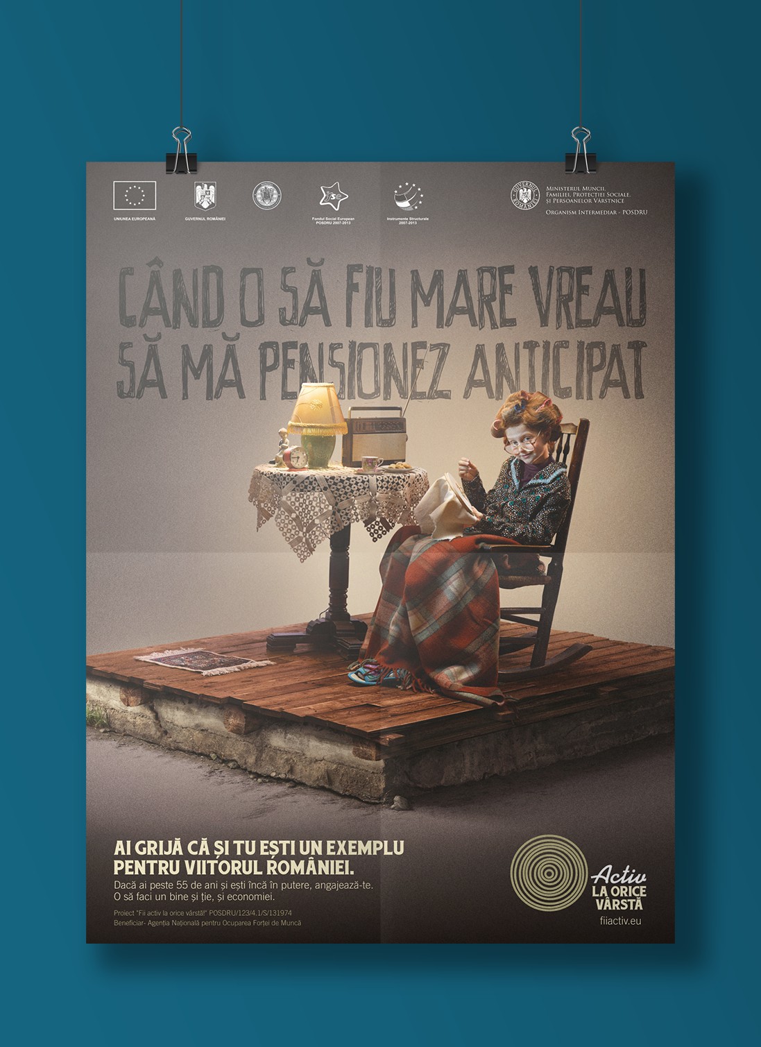 Agentia de strategie si manifestare creativa de brand Rusu+Bortun Brand Growers semneaza identitatea si campania „Activ la orice varsta” pentru Agentia Nationala pentru Ocuparea Fortei de Munca (ANOFM).