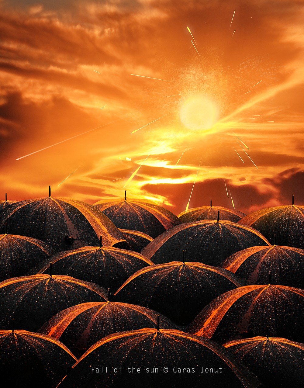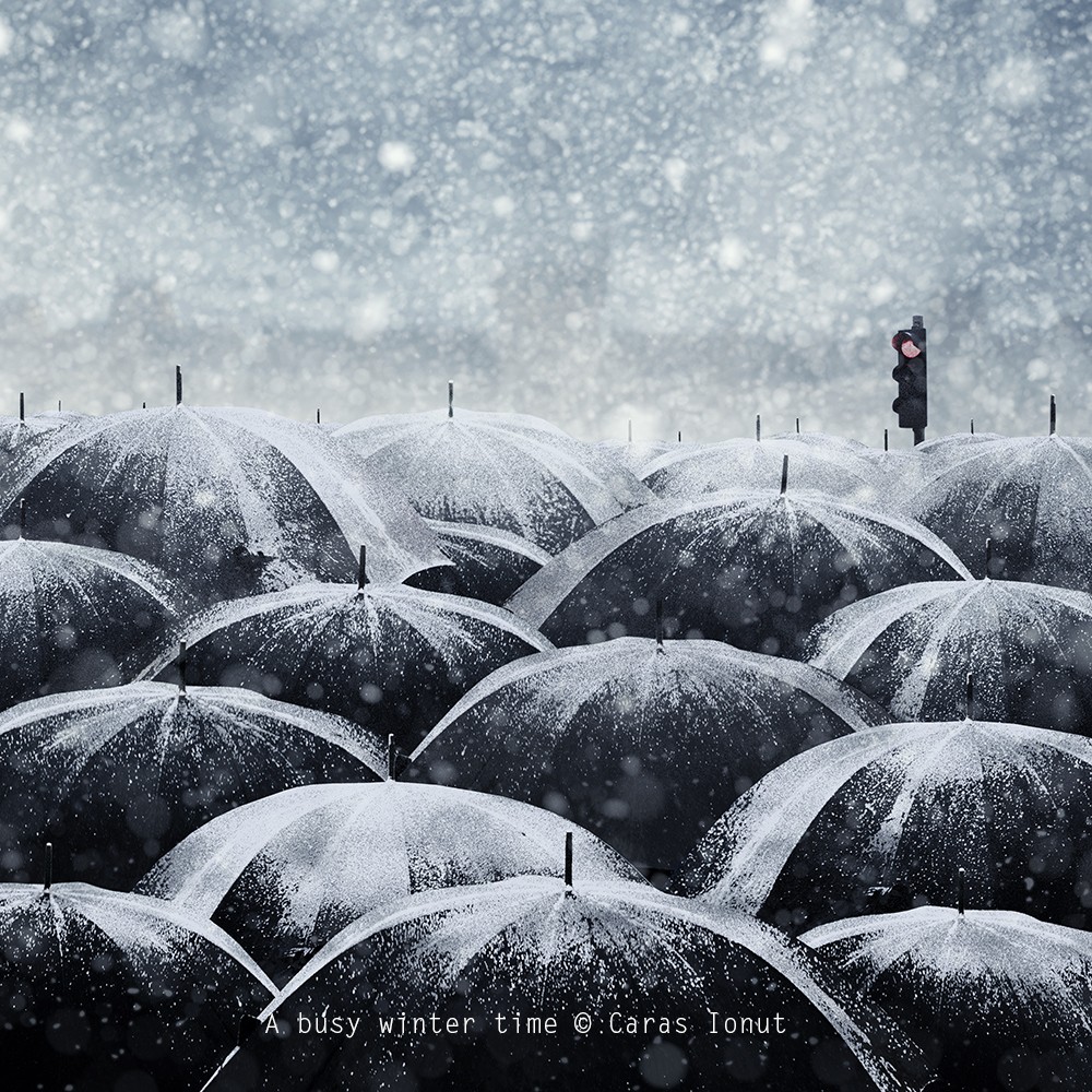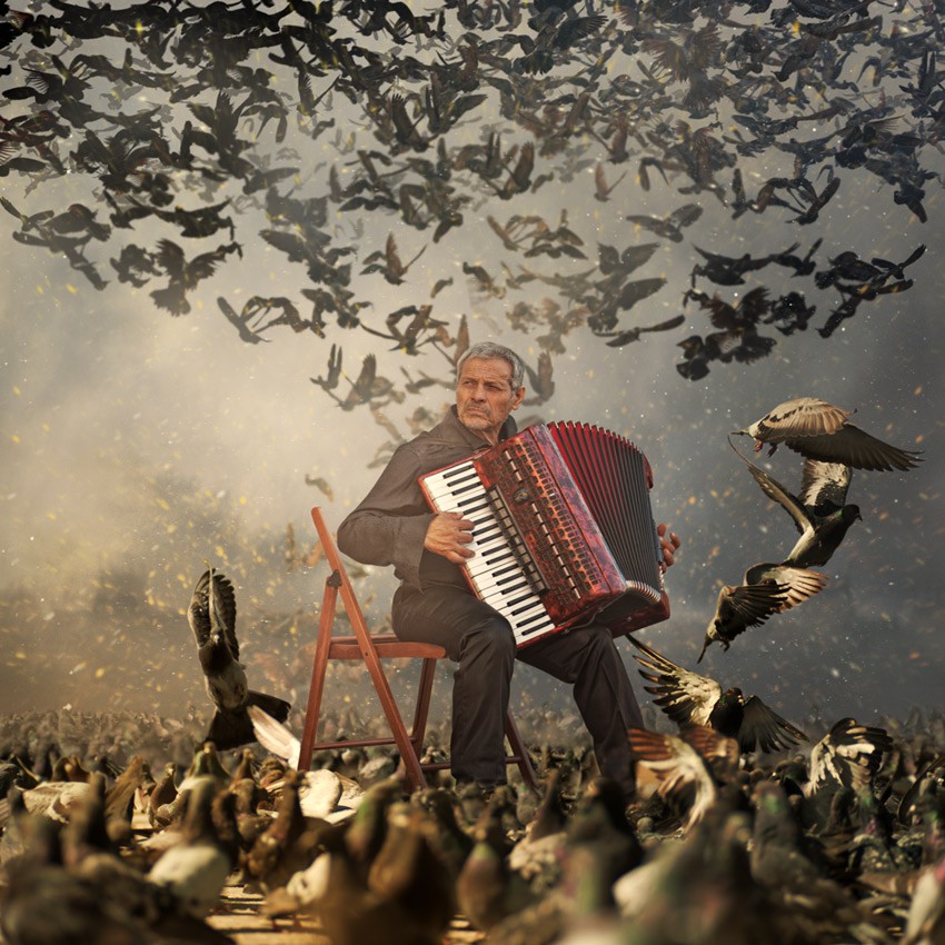 Fiecare imagine e ca o proza scurta, uneori fantastica, mereu impletita cu un etaj alternativ al realitatii. Fiecare spune o poveste, si in ele sunt cuprinsi rinoceri, pesti-submarini calariti de fete in haine rosii, cerbi cu coarne de copaci si scari care duc la nori.