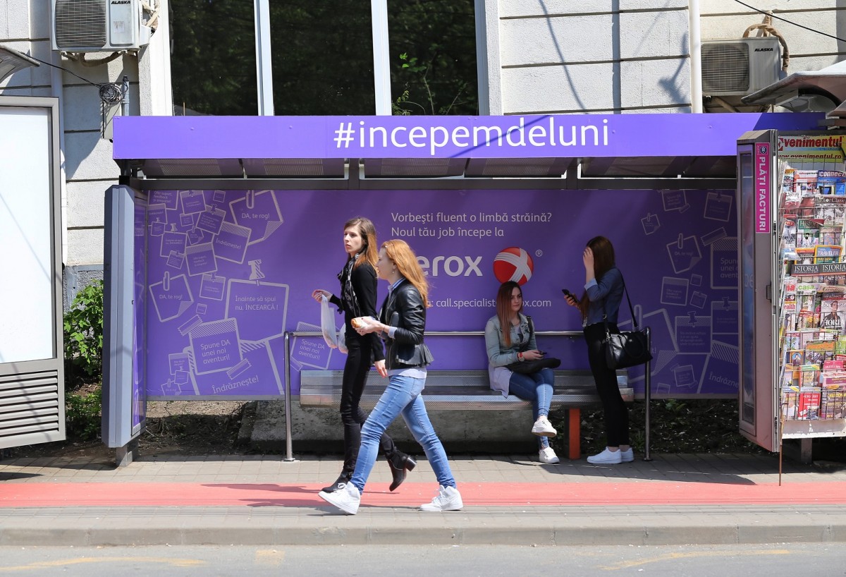 Decorul statiei si intreg proiectul fac parte din campania de recrutare Xerox Business Services: #incepemdeluni