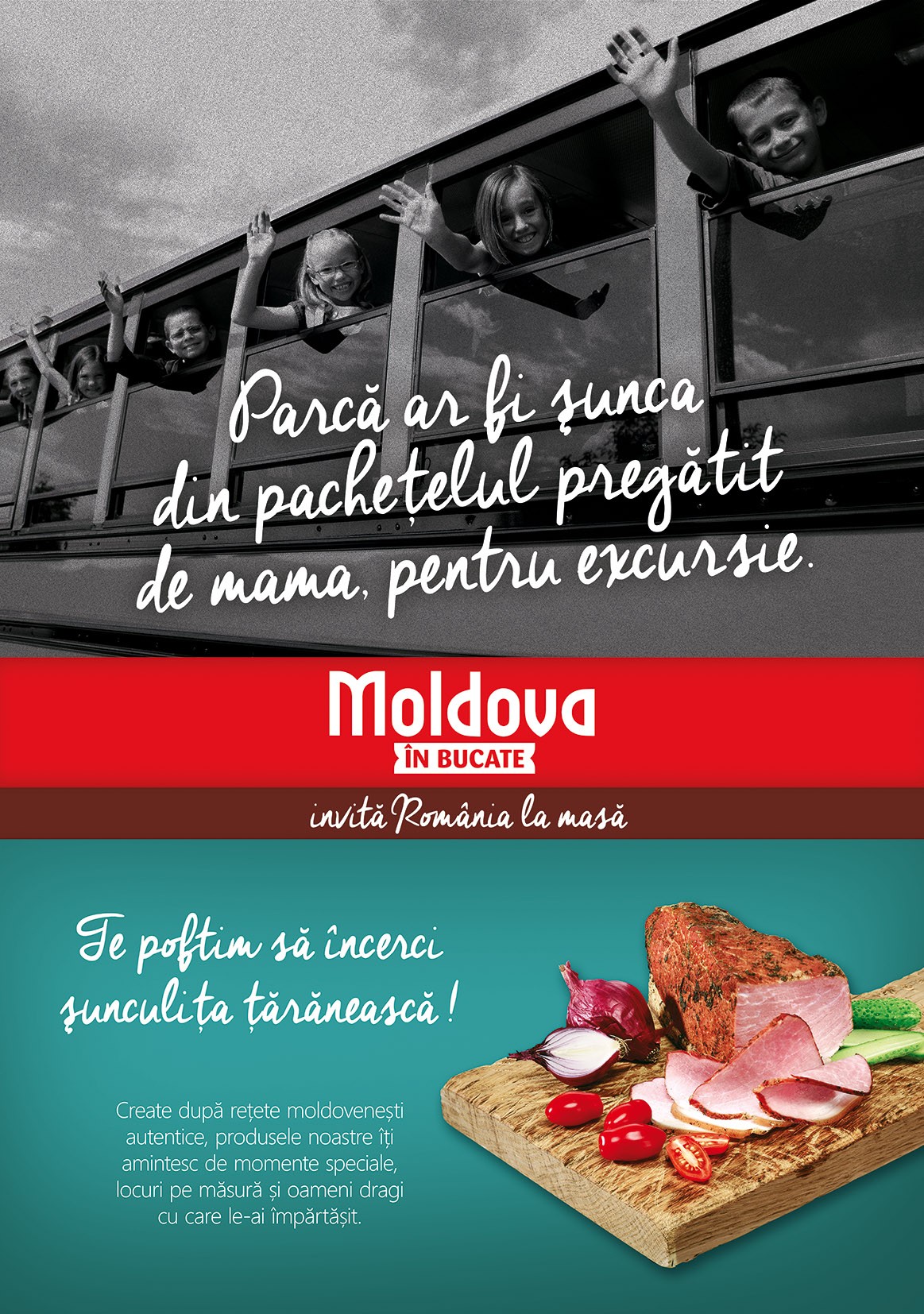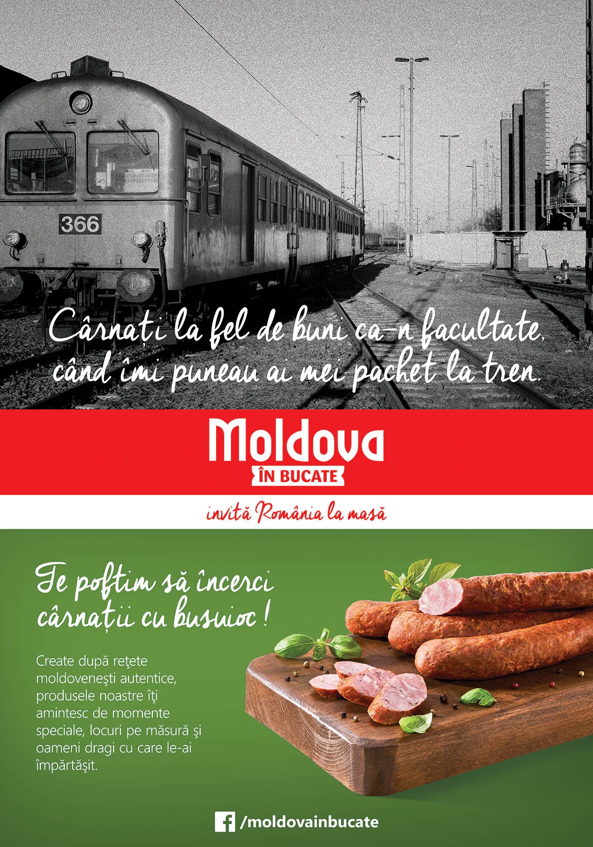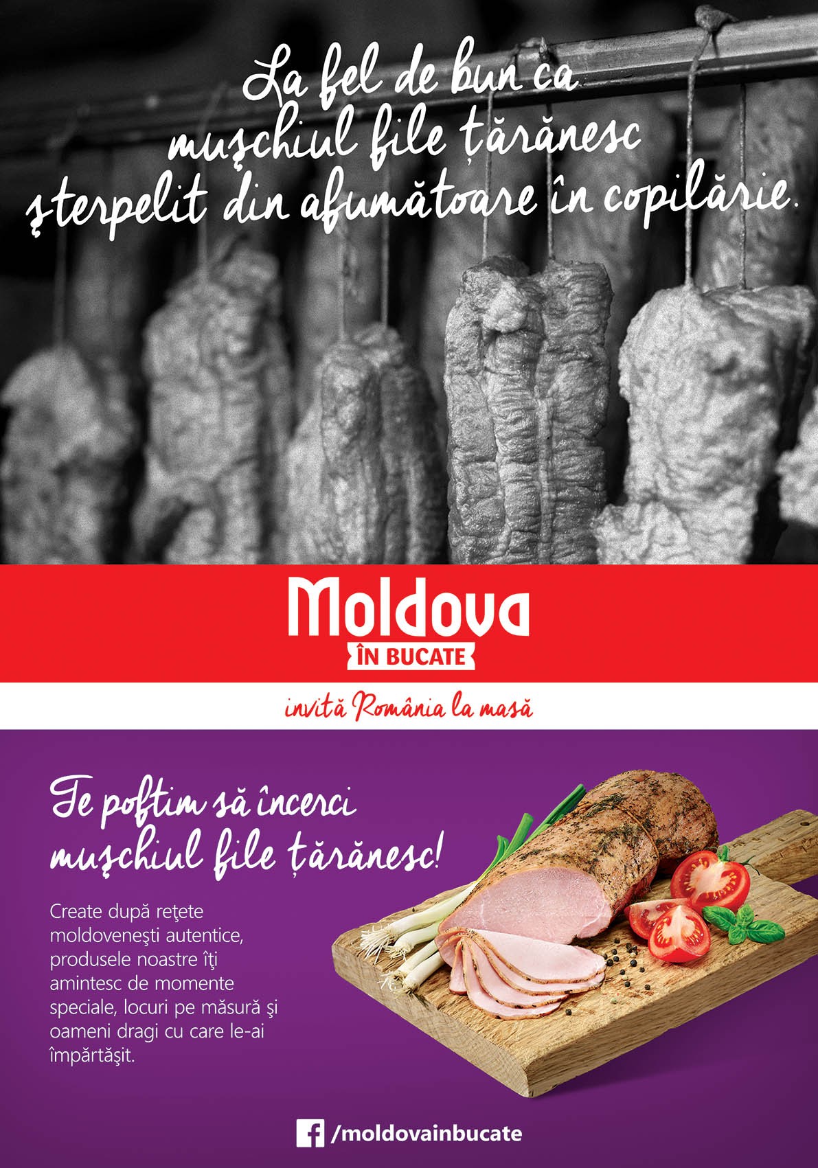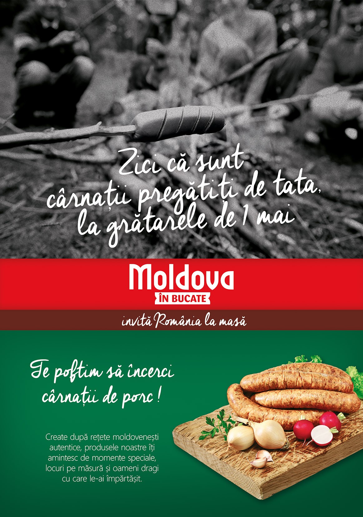 "Solutia creativa a venit pornind de la celebra ospitalitate moldoveneasca. Asa am ajuns sa invitam toata Romania la masa si sa o facem sa-si aminteasca cele mai frumoase experiente culinare. Inspirati din ambalajele alb negru, am construit universul vizual Moldova in Bucate si l-am populat cu Romania anilor ‘80 –’90, de la tenesii de Dragasani pana la gecile de blugi obligatorii, in care cu totii ne recunoastem si de care ne amintim cu drag.", spune Alexandru Negoescu (Deputy Creative Director Cohn&Jansen JWT).