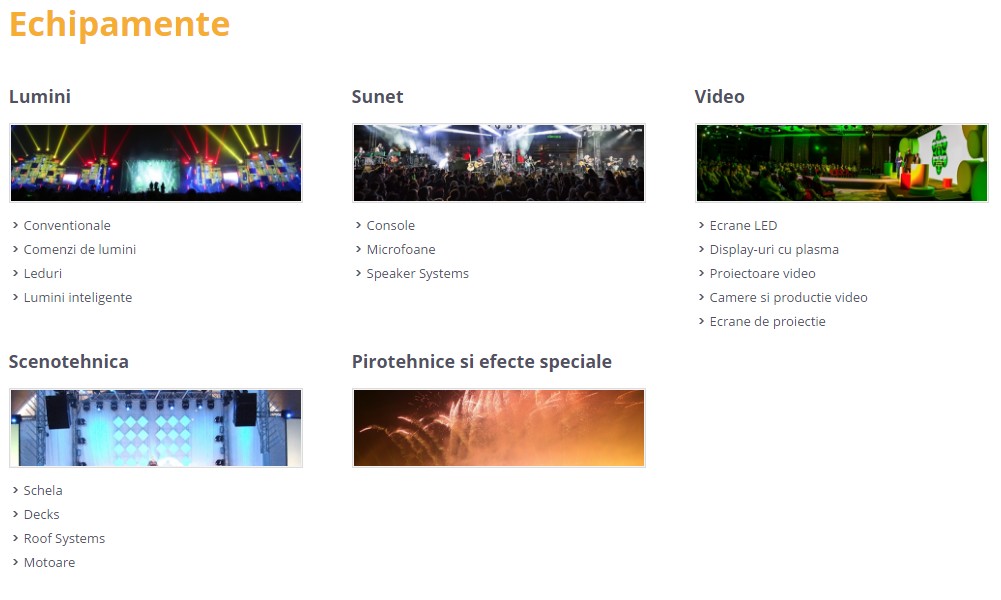 Printre informatiile prezentate pe site-ul companiei se regasesc serviciile oferite, echipamentele, echipa, proiectele realizate, adevarate studii de caz pentru evenimentele dezvoltate de companie.