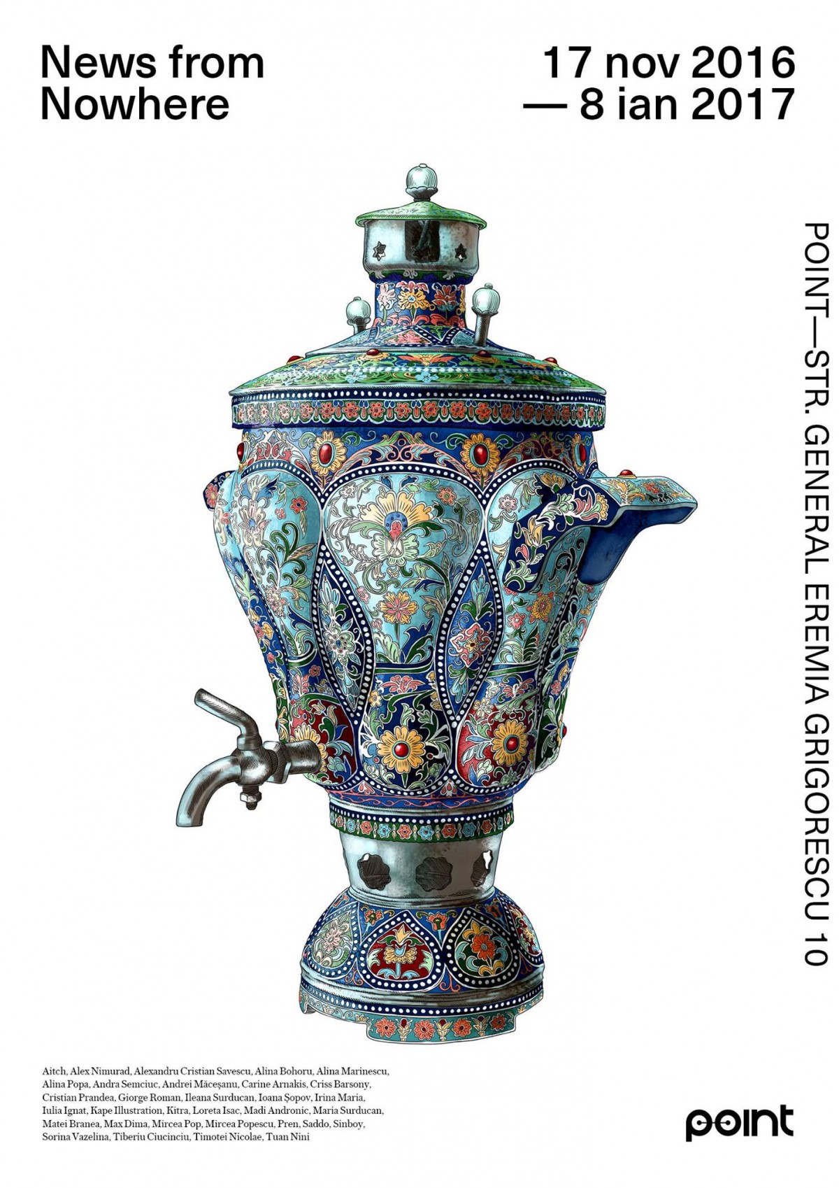 [UPDATE] Pe 20 decembrie, va avea loc primul nostru targ de ilustratie din tara care va aduce impreuna mai multi artisti. Va fi deschis de vineri pana duminica, intre 10:00 si 22:00. In cadrul targului, vor avea loc o serie de live drawings cu artistii care expun la POINT. Mai mult, acestia vor prezenta publicului o serie de lucrari noi din portofoliile lor, precum si printuri in editii limitate ce pot fi achizitionate la preturi accesibile.