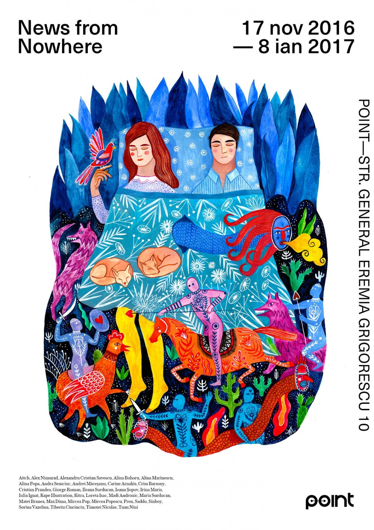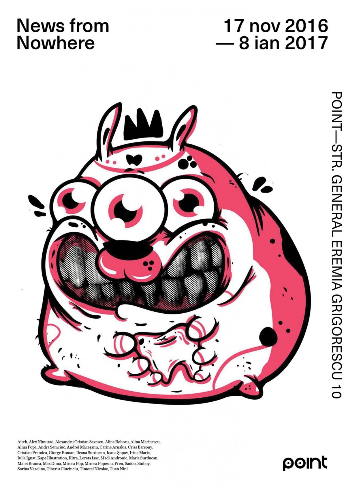 Expozitia va dura pana pe 8 ianuarie, de vizitat de vineri pana duminica intre 12:00 si 00:00. Intre timp, lucrez impreuna cu o parte din artistii care expun la POINT pentru urmatoarea expozitie, care va fi dedicata in exclusivitate ilustratiei de carte.