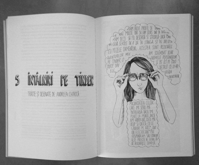 Cat timp am lucrat la cartea asta mi-am inchis Facebook-ul si dupa o vreme mi-am inchis si contul de Instagram. Cred ca altfel nu as fi reusit sa o termin. E nevoie de un tip de concentrare si de liniste, foarte fragile. Drept dovada e faptul ca au fost perioade lungi (o luna, doua) in care nu am desenat nici o pagina, pentru ca nu ma puteam rupe de...viata, de lume, de tot ce se intampla in jur.
