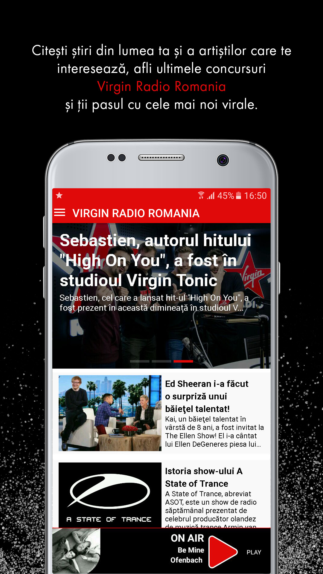 Virgin Radio Romania este cel mai nou radio din familia Virgin Radio International, grup de radiouri deținut de Virgin Group și cu vechime de 24 de ani pe piața internațională, prezent în 10 țări. Începând cu 9 ianuarie, Virgin Radio Romania a început să emită pentru generația tânără, cu cele mai cool tendințe internaționale și un sunet modern și pozitiv.