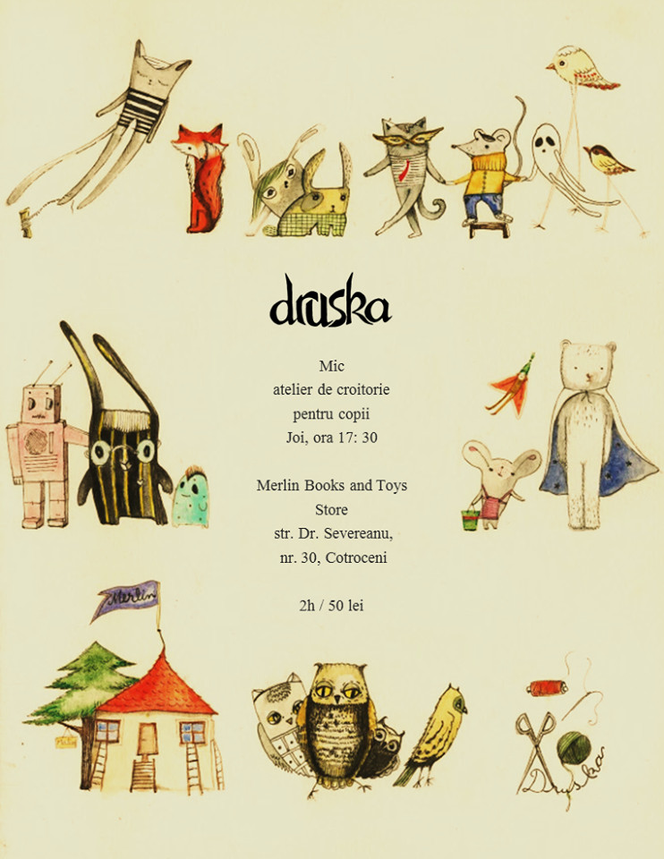 Tot sub numele acesta am tinut si “Druska. Mic atelier de croitorie pentru copii” pe care as vrea sa il reiau candva. Am si pagina de Facebook, Druska, unde postez cate un pic din toate. De trei ani, Druska face costumele doamnelor din corul Coeur de Chambre de Luxembourg, o colaborare foarte relaxata.