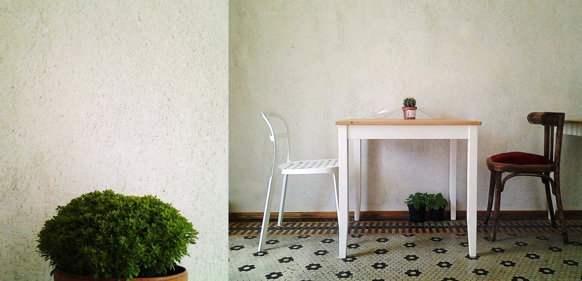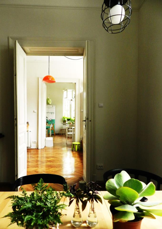 Amenajarea continua si acum. Therapy este un spatiu in miscare, plantele cresc, apar obiecte noi, ilustratii noi, carti noi in biblioteca in formare, meniul este sezonier, bucatareasa foarte creativa. Practic a durat din martie 2015 pana in septembrie 2015.