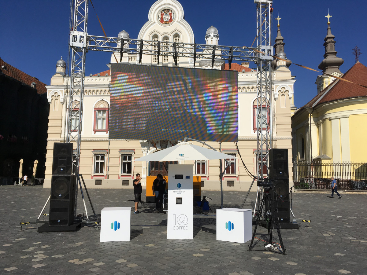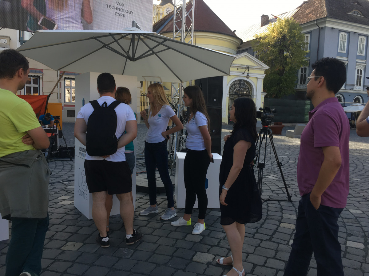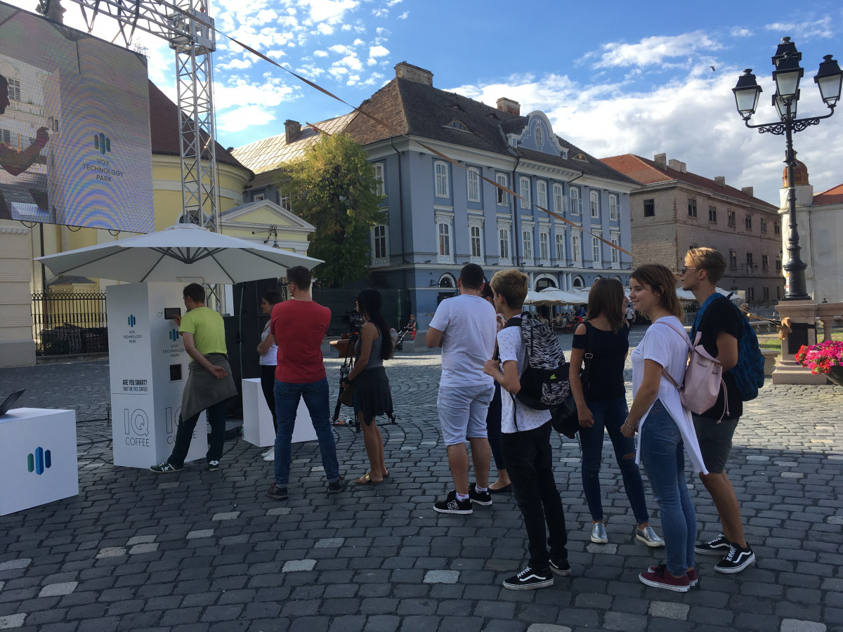 "Inteligența poate fi mai importantă decât banii. Am dorit să arătăm asta în noua campanie IQ Cafe, pentru clădirea de office Vox Technology Park, unde celebrăm inteligența din Timișoara. Am modificat un aparat de cafea astfel încât, în loc de bani folosești inteligență. Un mic IQ test de rezolvat :) și cei care treceau prin piața Unirii primeau o cafea gratuită dacă rezolvau.