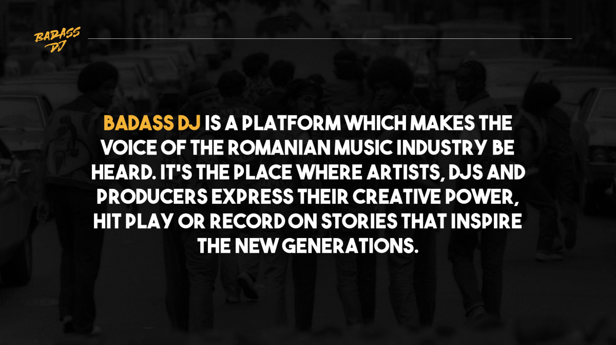 Badass DJ este o platformă care va face auzită vocea industriei muzicale din România. Este locul unde artiști, DJi și producători români pun pe hârtie, dau play sau record unor povești care să inspire noile generații.