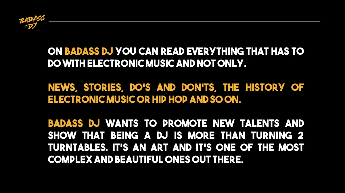 Pe badassdj.ro veți avea acces la noutăți din industrie, veti putea asculta mix-uri în premieră, veți afla poveștile artiștilor preferați și veți putea contribui oricând cu content. Vor exista rubrici tematice dedicate pieței din România, scrise de oameni cu experiență.