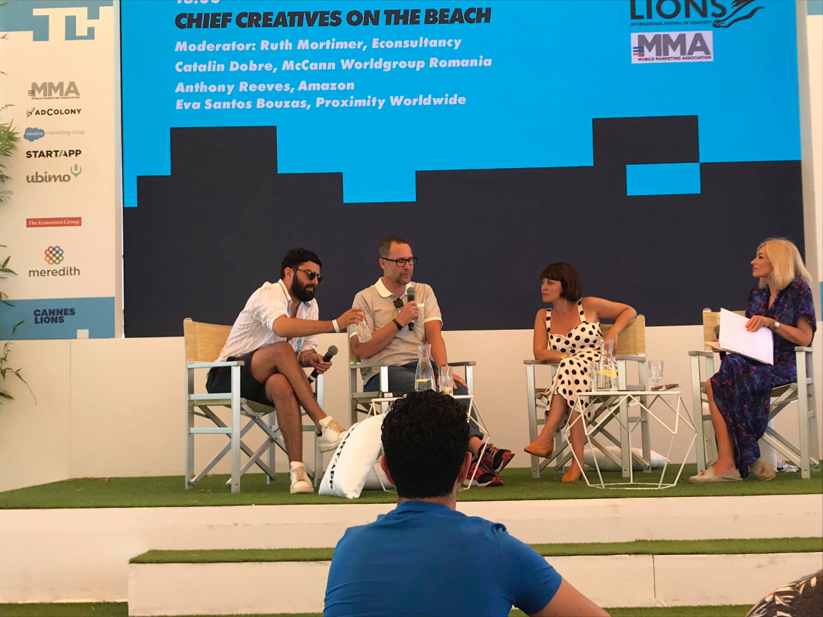 La plaja Facebook nu mai au mancare gratis, asa ca ma duc la Cannes Lions Beach unde am auzit ca au cartofi prajiti si mai mult, Catalin raspunde la intrebari despre creativitate si inteligenta artificiala in cadrul "Chief Creatives on the Beach" alaturi de Eva Santos de la Proximity si Anthony Reeves de la Amazon.
