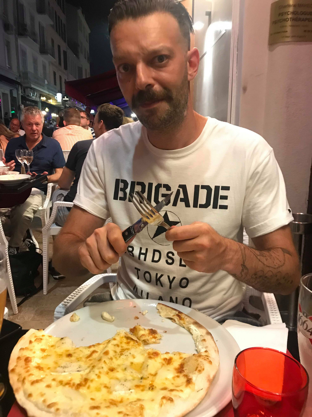 Dupa un power nap de aproximativ o ora, ma intalnesc cu Hypno si cu Erhan care tocmai au aterizat. Hypno mananca pizza cu furculita si cutitul.