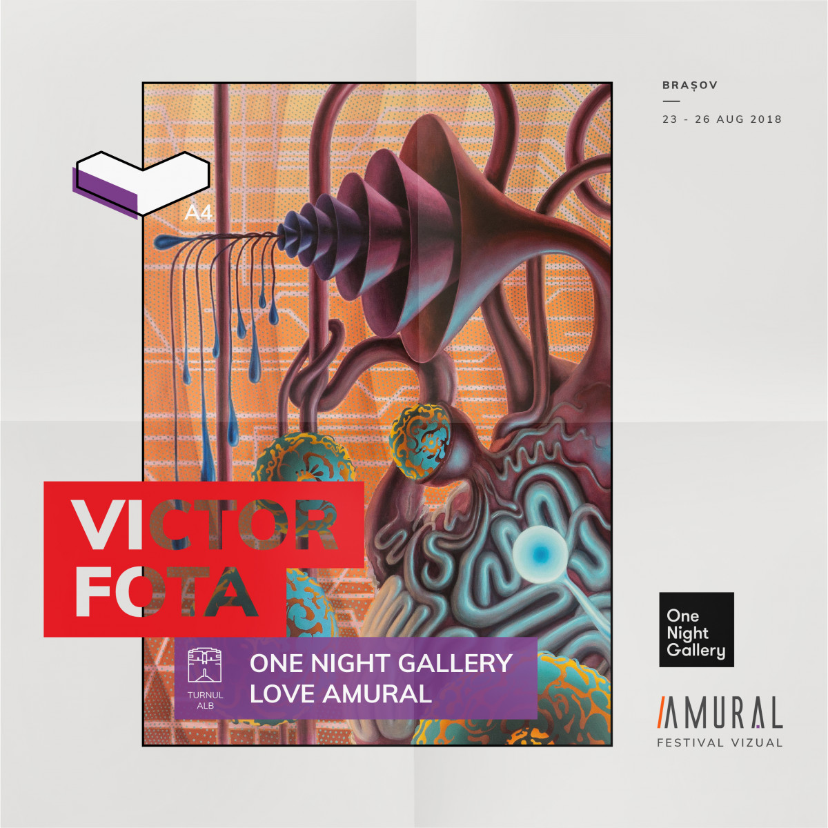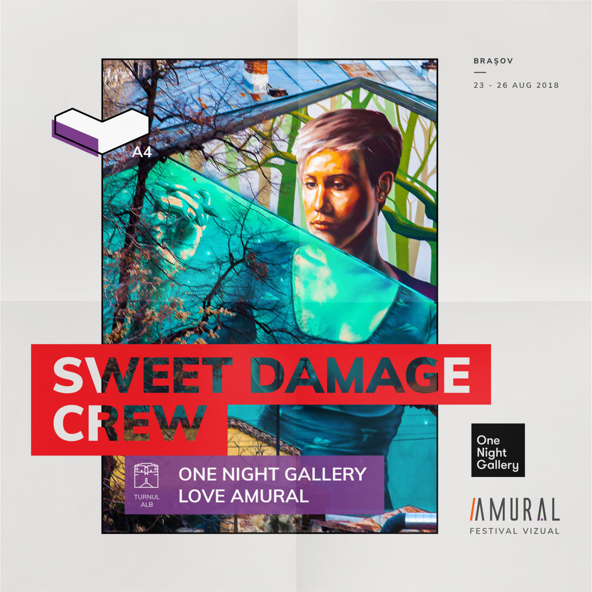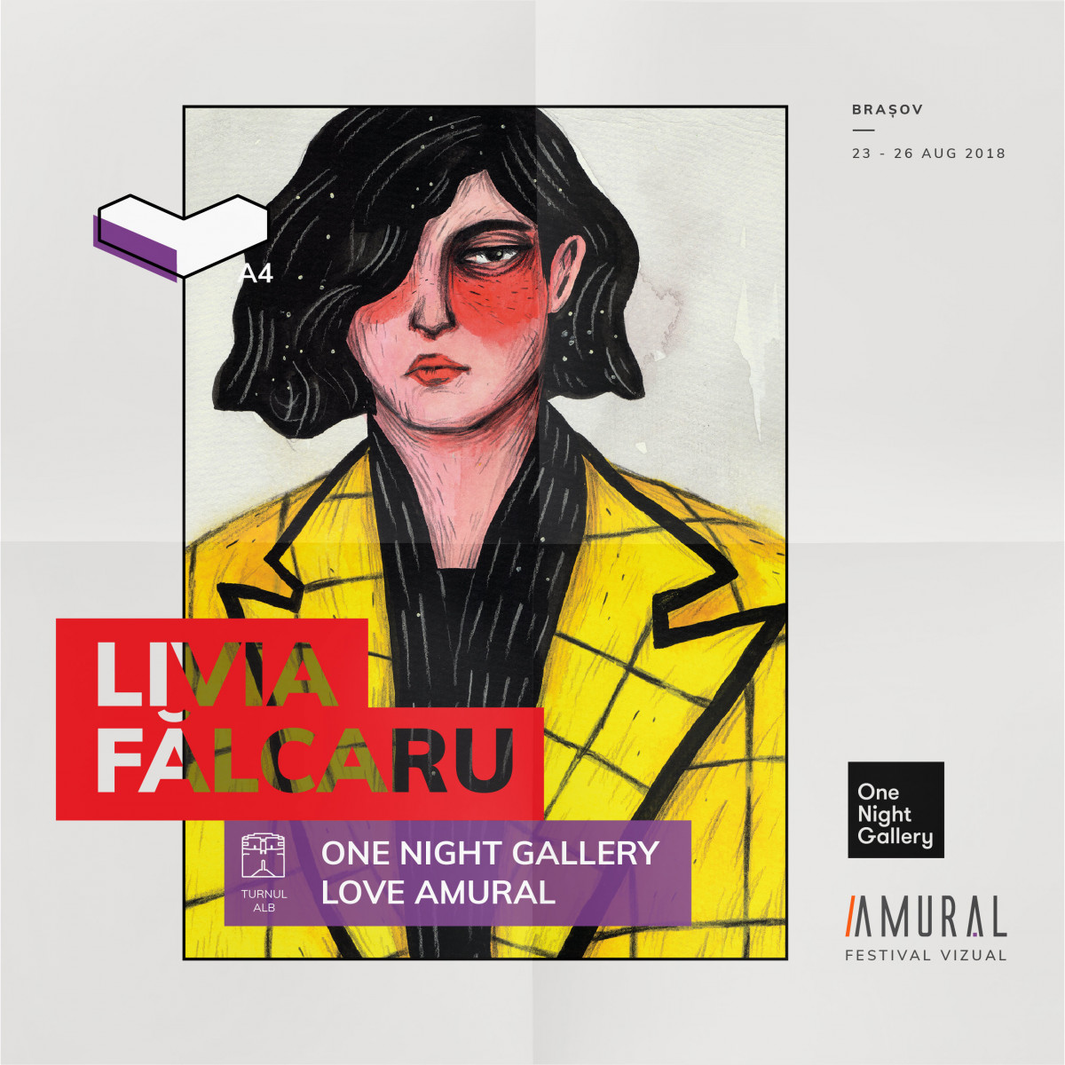 Azi începe cea de-a patra ediție AMURAL Festival Vizual, intitulată sugestiv Ediția A4. Turnul Alb, un reper important pe harta festivalului, se transformă într-o expozitie de artă curatoriată de One Night Gallery. Aceasta va prezenta lucrările celor șase artiști care au semnat edițiile One Night Gallery de până acum: Paul Dersidan, Bianca Dumitrașcu, Sweet Damage Crew, Livia Fălcaru, Raluca Băraru și Victor Fota.