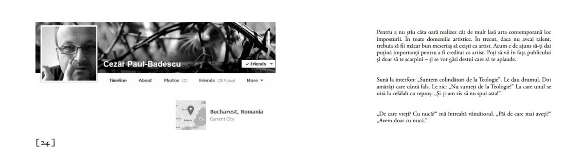 Cu fața la perete, cunoscut si sub numele Scriitorii sunt pe Facebook, s-a intamplat in 2014, cand inca nu lucram in agentie. Este vorba despre o antologie de statusuri ale scriitorilor romani contemporani, pe care am distribuit-o prin scoli si baruri, cu scopul de a apropia tinerii de ideea de scriitor contemporan.