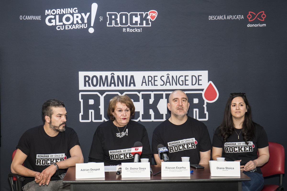 În contextul acestei nevoi de sânge în România, „Morning Glory cu Răzvan Exarhu”, matinalul ROCK FM, inițiază, împreună cu Centrul de Transfuzie Sanguină București și Donorium, campania națională „România are sânge de rocker”, prin care își propune să crească numărul donatorilor de sânge. Timp de o lună, 5 dintre cele mai cunoscute formații rock din România - Vița de Vie, COMA, Byron, Trooper și Nightlosers – vor cânta cover-uri rock după cele mai cunoscute șlagăre românești.