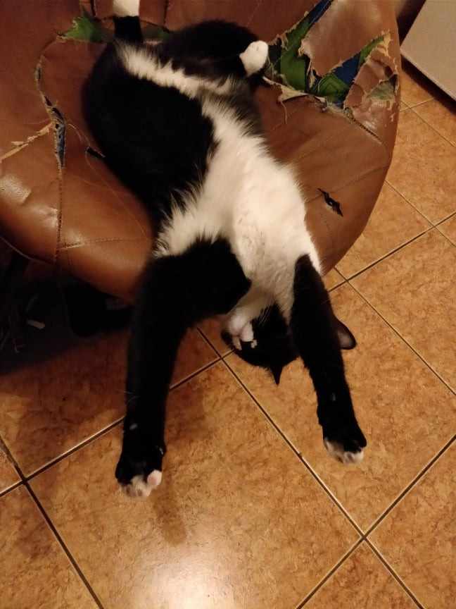 Când stau la masă, scriu sau urmăresc un film pe laptop și se cațără pe tastatură pentru că ea are nevoie de afecțiune exact atunci. Îi place să-și frece fruntea de fruntea mea și, când nu sunt atent, să sară și să-mi lingă părul sau, cum spune ea, „să mă spele”, pentru că vede că sunt destul de incapabil și nu mă pot linge singur în cap.