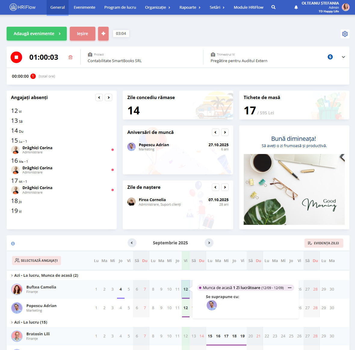 Cea mai mare mulțumire pentru noi este faptul că putem ajuta oamenii să-și câștige timpul înapoi, îi putem ajuta să se concentreze pe lucrurile cu adevărat importante pentru succesul afacerii. Și pentru a veni în sprijinul clienților, am oferit gratuitate în aplicație tuturor firmelor care au fost nevoite să oprească activitatea temporar. Ne dorim ca toată lumea să treacă cu bine peste această perioadă și să învățăm cu toții ceva din tot ceea ce se întâmplă!", povestește Elisa Sălcudean (Sales Executive, HRiFlow).