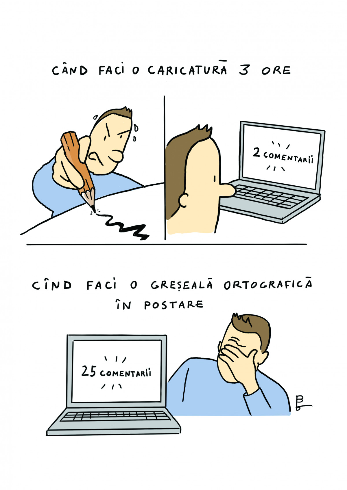 Caricatura este un job/hobby aparte. Conlucrez cu ong-uri la proiecte sociale și companii comerciale sau individuali la proiecte de promovare. Clienții mă găsesc văzând lucrările mele pe rețelele sociale și alte publicații sau prin recomandare.