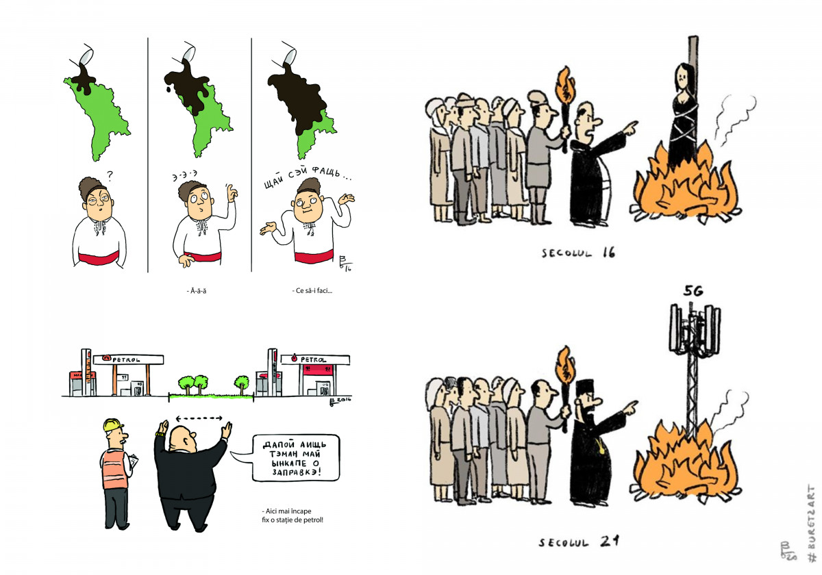 Pe Alex îl cunoaște lumea mai ales după ilustrațiile care merg virale pe internet, pentru actualitatea lor, pentru sens și simțul umorului pe care-l pune în caricaturile sale. Vă arătăm și vouă câteva, mai jos, dar puteți să le vedeți și pe pagina sa de facebook. Despre background, tabieturi de design, inspirație, primele proiecte și caricaturi, în continuare cu Alex Buretz.
