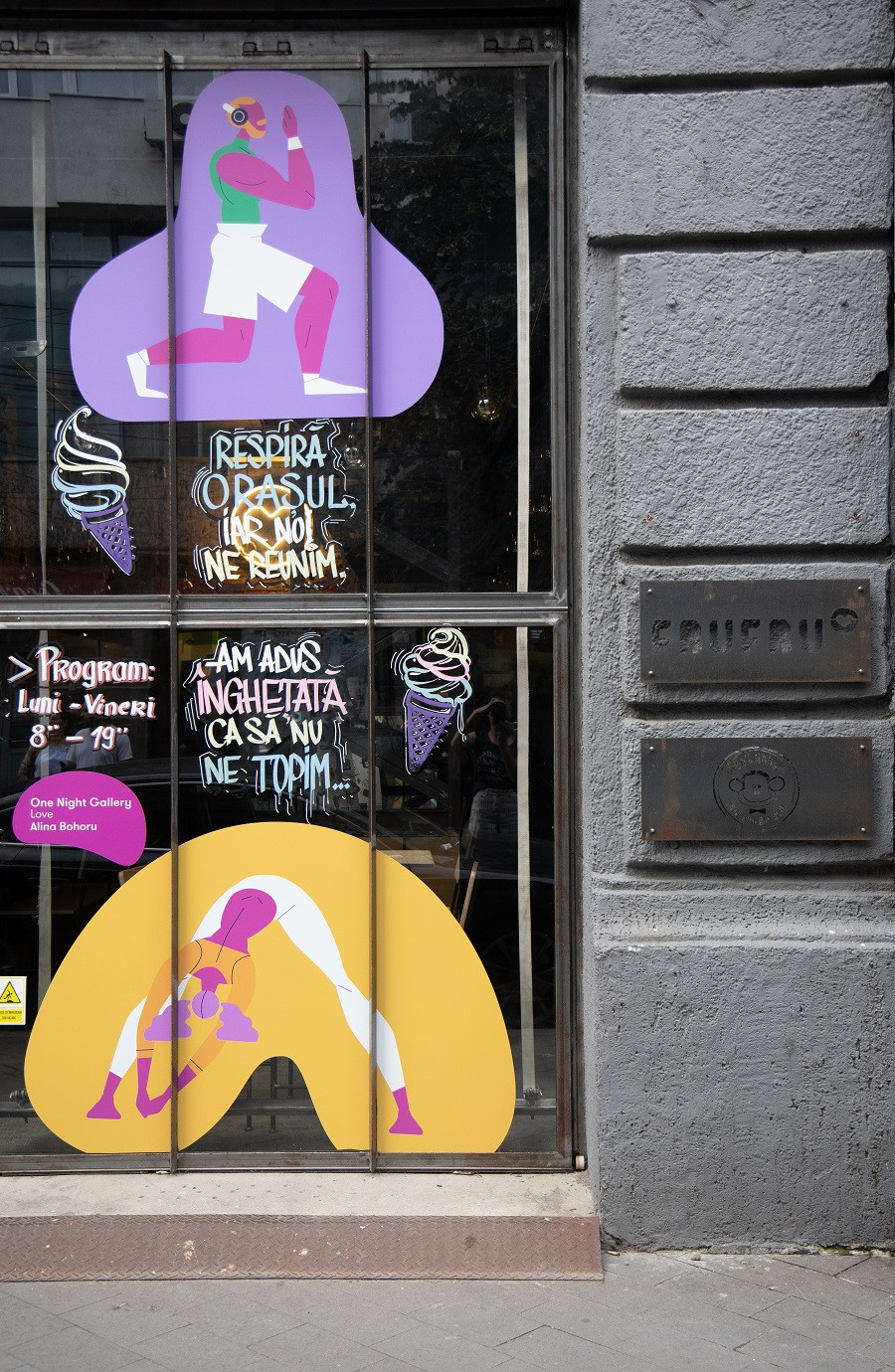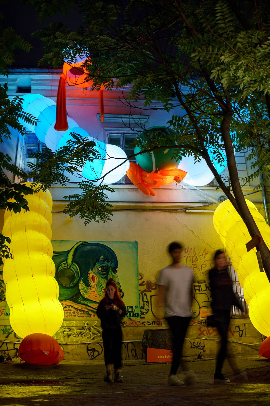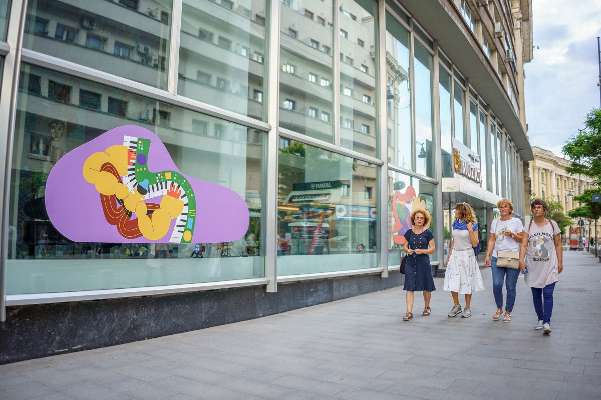 Turul artistic din București a inclus expoziții fizice în vitrinele diferitelor magazine sau cafenele, precum și instalații colaborative create prin video-mapping sau machine learning.